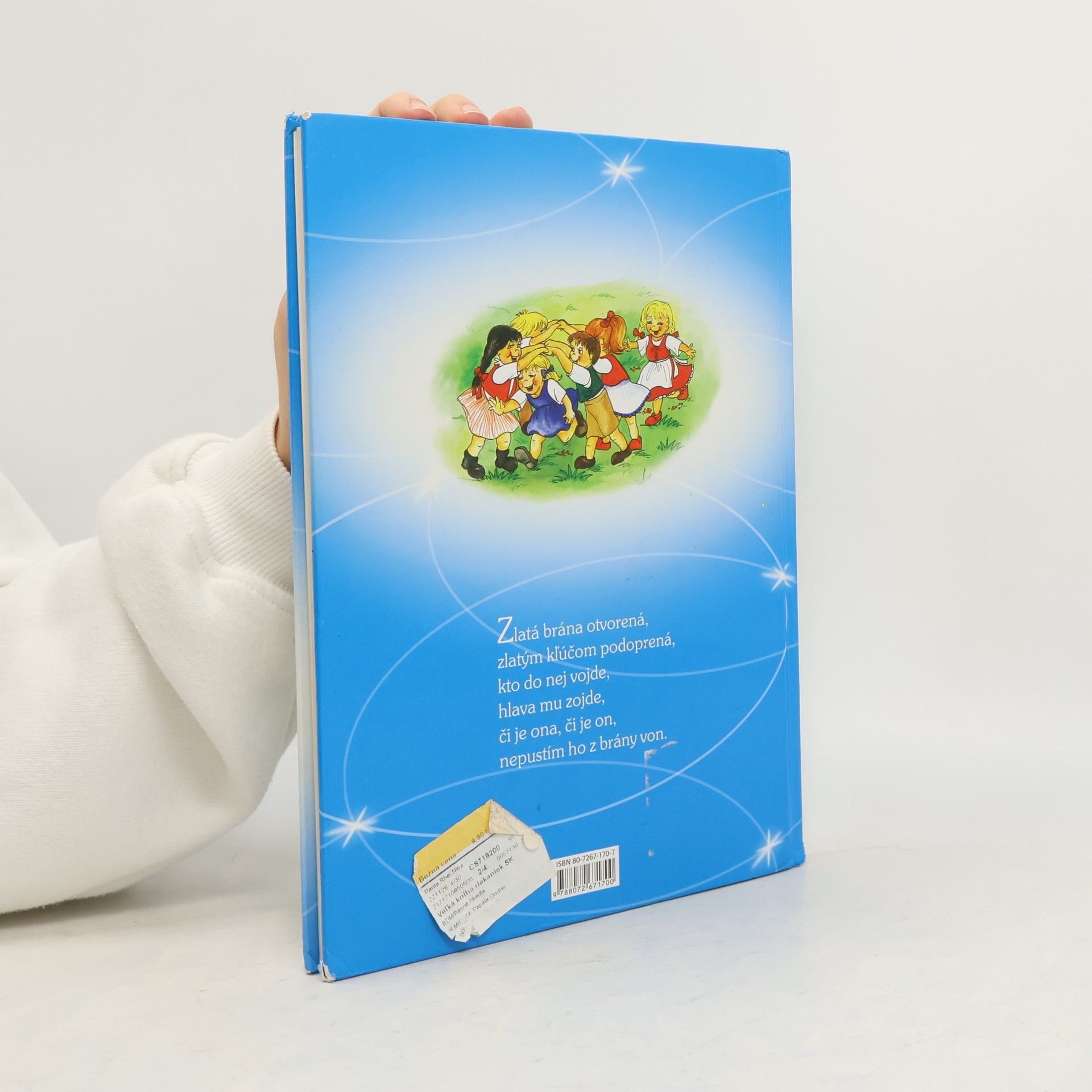 Riekanky známe i neznáme, doplnené prekrásnymi obrázkami obohatia slovnú zásobu vášho potomka, vy si zaspomínate na tie svoje - keď ste boli ešte malí. Zlatá brána otvorená; Slimák, slimák, vystrč rožky; Pec nám spadla; Varila myšička kašičku; Orie, orie Ján… a ďalšie známe ale aj pozabudnuté slovenské riekanky, básničky, hry a vypočítanky sú doplnené o veselé obrázky Vladimíry Vopičkové. Knižka plná krátkých, ľahko zapamätateľných riekaniek je určená pre našich najmenších.