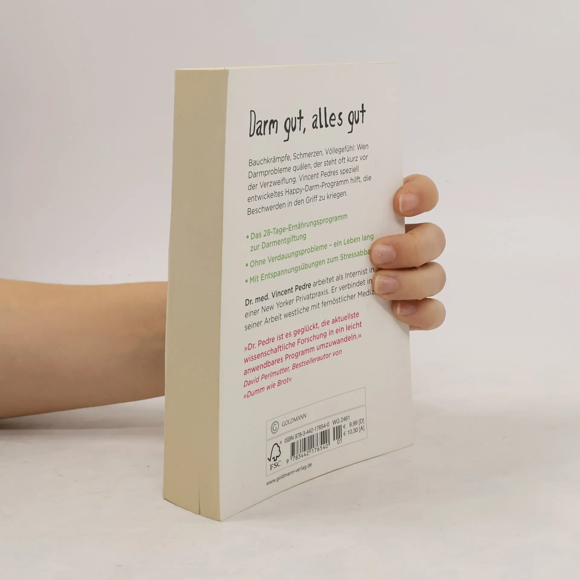 Unser Wohlbefinden hängt unmittelbar mit der Darmgesundheit zusammen. Wen Darmprobleme quälen, der steht oft kurz vor der Verzweiflung. Dr. Vincent Pedres speziell entwickeltes Happy-Darm-Programm hilft, Darmprobleme in den Griff zu kriegen. Werden Sie durch eine darmfreundliche Ernährung und Lebensweise wieder vital, gesund und schlank. Dr. Vincent Pedre erklärt Schritt für Schritt, wie Sie Ihren Darm glücklich machen und Darmproblemen Ade sagen. Ausstattung: Mit 17 s/w Fotos