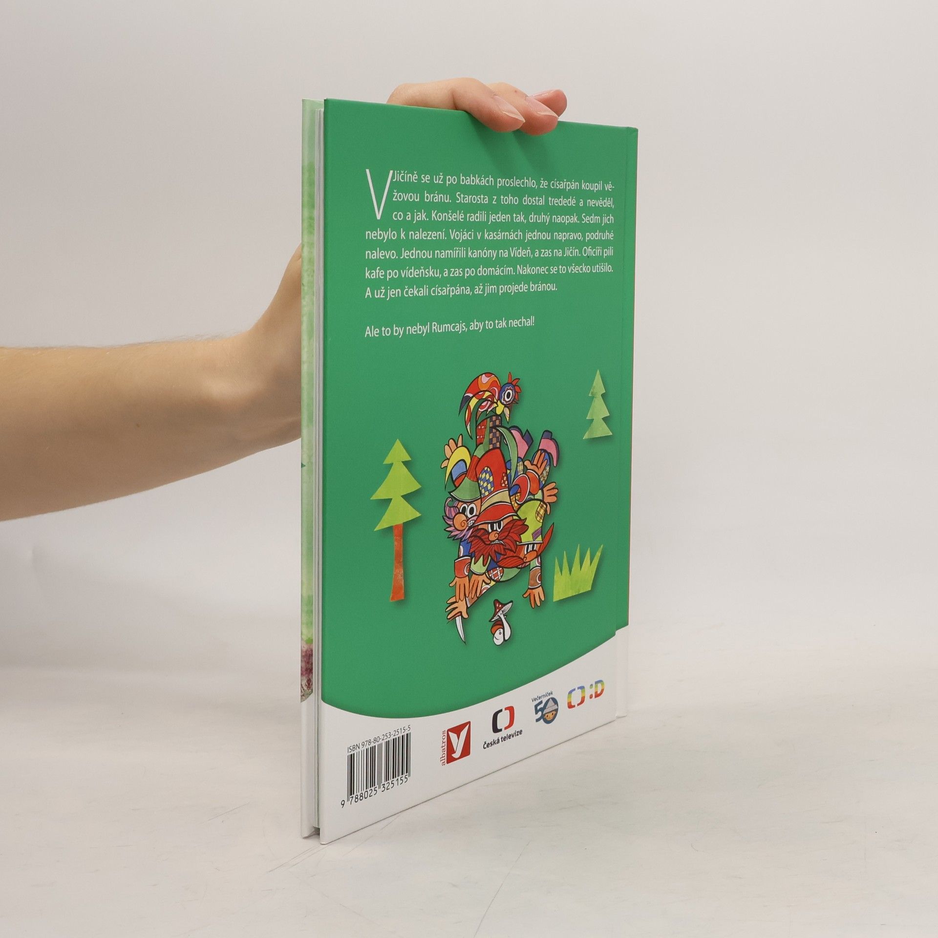 V Jičíně se už po babkách proslechlo, že císařpán koupil věžovou bránu. Starosta z toho dostal trededé a nevěděl, co a jak. Konšelé radili jeden tak, druhý naopak. Sedm jich nebylo k nalezení. Vojáci v kasárnách jednou napravo, podruhé nalevo. Jednou namířili kanóny na Vídeň, a zas na Jičín. Oficíři pili kafe po vídeňsku, a zas po domácím. Nakonec se to všecko utišilo. A už jen čekali císařpána, až jim projede bránou. Ale to by nebyl Rumcajs, aby to tak nechal!