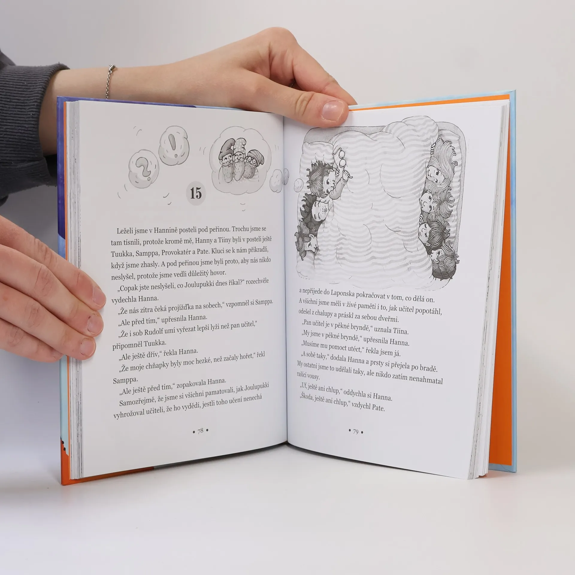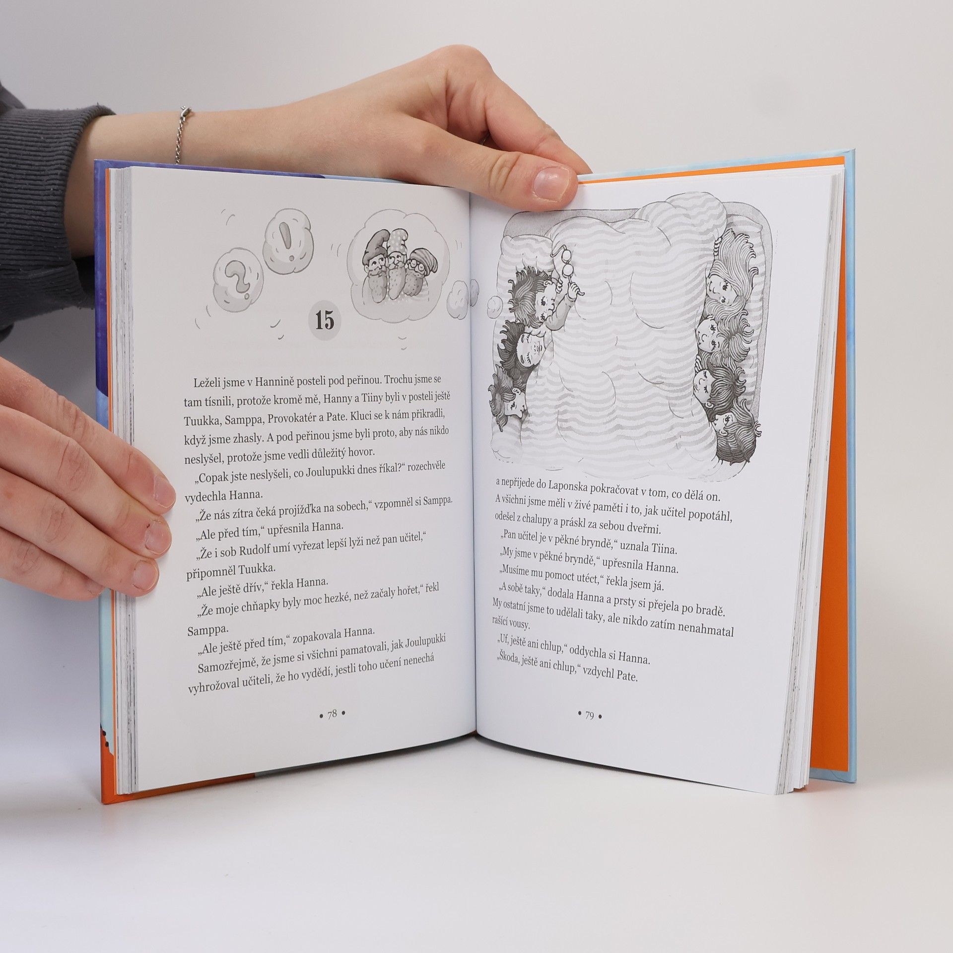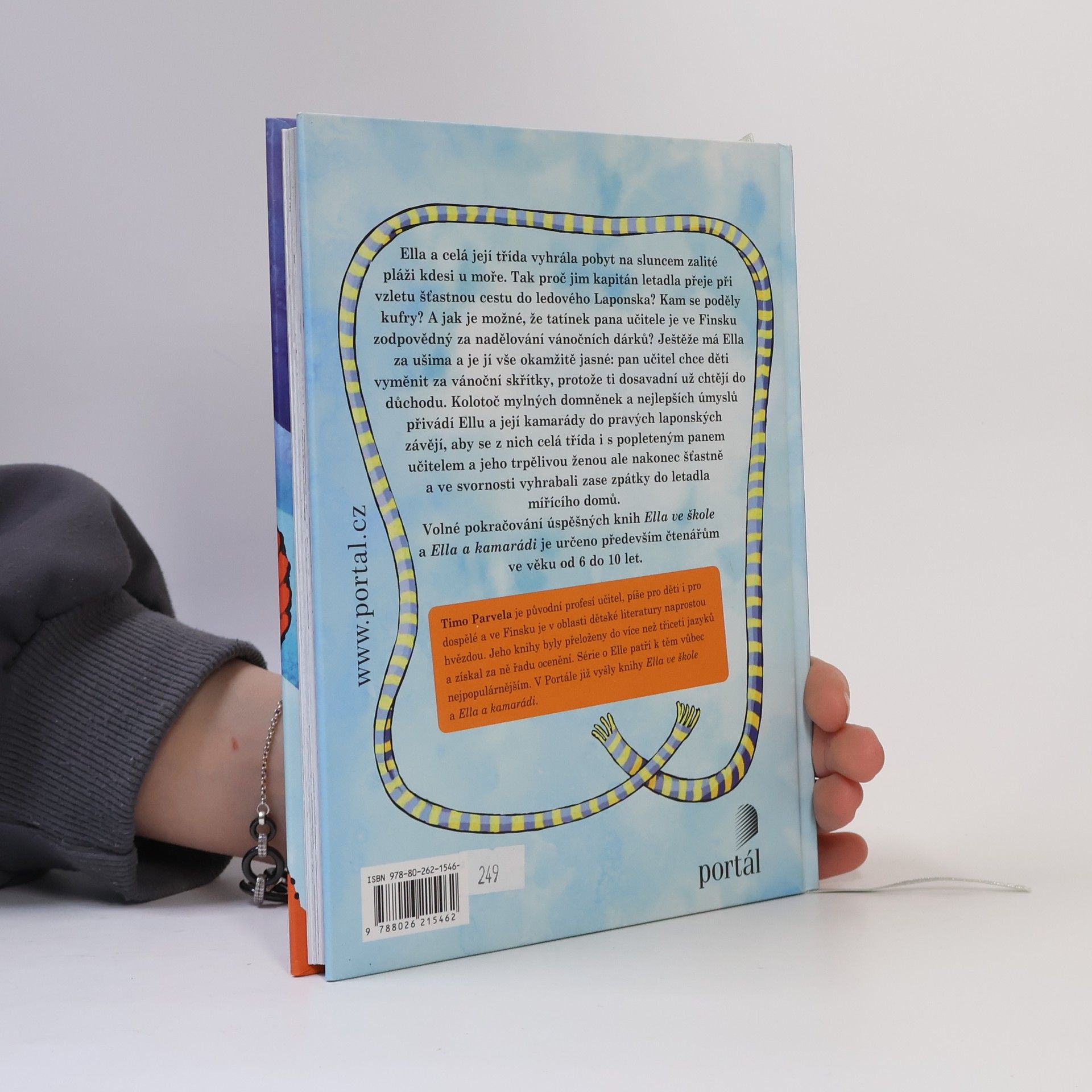 Ella a celá její třída vyhrála pobyt na sluncem zalité pláži kdesi u moře. Tak proč jim kapitán letadla přeje při vzletu šťastnou cestu do Laponska? Kam se poděly kufry? A jak je možné, že tatínek pana učitele je ve Finsku zodpovědný za nadělování vánočních dárků? Ještěže má Ella ušima a je jí vše okamžitě jasné: pan učitel chce děti vyměnit za vánoční skřítky, protože ti dosavadní už chtějí do důchodu. Kolotoč mylných domněnek a nejlepších úmyslů přivádí Ellu a její kamarády do pravých laponských závějí, aby se z nich celá třída i s popleteným panem učitelem a jeho trpělivou ženou ale nakonec šťastně a ve svornosti vyhrabali zase zpátky do letadla domů.