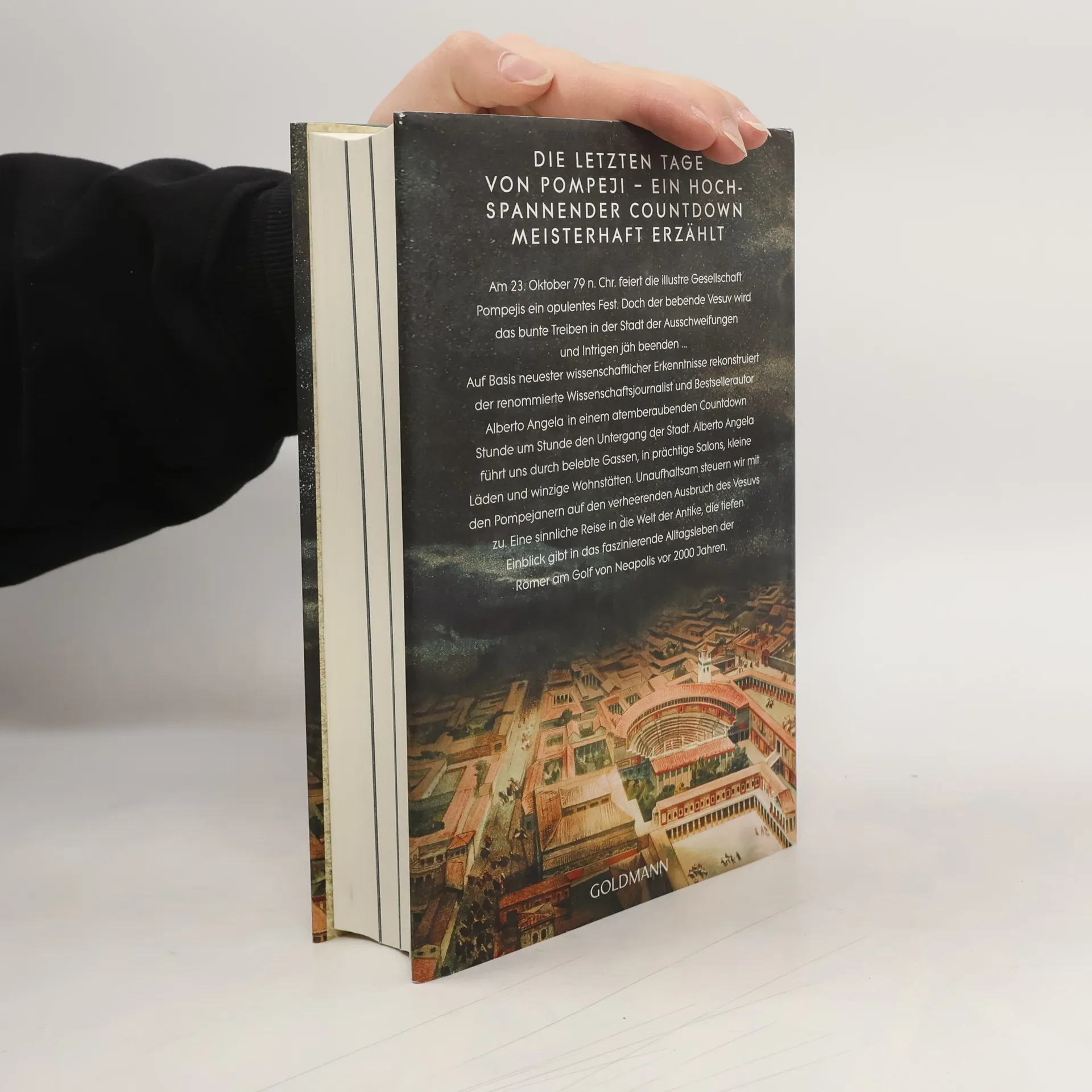 Noch nie wurde das Leben in der antiken Stadt kurz vor dem Untergang so anschaulich und unmittelbar erzählt Am 23. Oktober 79 n. Chr. feiert die illustre Gesellschaft Pompejis ein opulentes Fest. Der bebende Vesuv wird das bunte Treiben jäh beenden. Auf Basis neuester wissenschaftlicher Erkenntnisse rekonstruiert der renommierte Wissenschaftsjournalist Alberto Angela in einem hochspannenden Countdown Stunde um Stunde den Untergang der Stadt, den eine Handvoll Menschen tatsächlich überlebte. Alberto Angela führt durch belebte Gassen, in prächtige Salons, kleine Läden und an erst kürzlich versiegte Brunnen. Eine sinnliche Reise in die Welt der Antike, die tiefen Einblick gibt in das faszinierende Alltagsleben am Golf von Neapolis vor 2000 Jahren. Ausstattung: 32 S. farbiger Bildteil, 8 s/w-Abbildungen