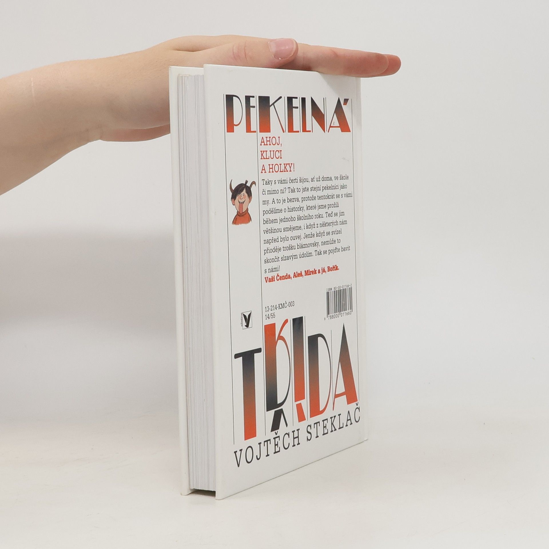 Veselé školní i mimoškolní historky oblíbené Boříkovy party z Holešovic. Osvědčené čtení plné legrace pro kluky i holky v novém, upraveném vydání. Pekelná třída - to je parta, se kterou jste se seznámili již ve třech knížkách boříkovských lapálií. Jistě si knížku rádi přečtete i kvůli půvabným barevným ilustracím Adolfa Borna. Dozvíte se v ní, jak vnímají září, jak si celý školní rok zpestřují nejrůznějšími vylomeninami, co všechno je láká ve Stromovce, jak se potýkají se Zátoráky, jak si udělali mejdan, jak se vypořádávají se šplhounem Bohouškem, jak doma válčí s rodiči. Není divu, že jejich nebohá paní třídní učitelka, něžně přezdívaná Drábinka, se často chytá za hlavu a volá: "Tahle třída, to je peklo!"