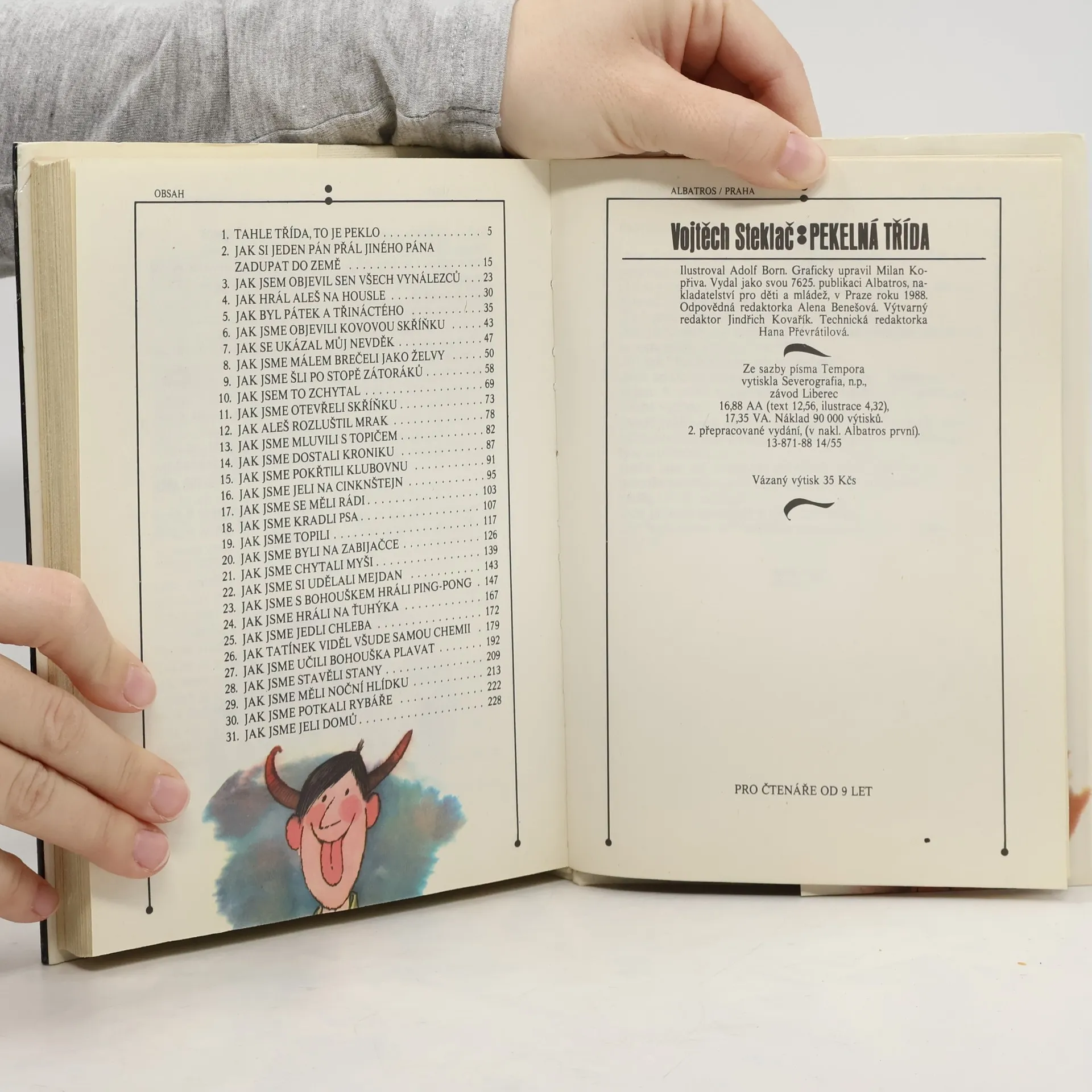 Veselé školní i mimoškolní historky oblíbené Boříkovy party z Holešovic. Osvědčené čtení plné legrace pro kluky i holky v novém, upraveném vydání. Pekelná třída - to je parta, se kterou jste se seznámili již ve třech knížkách boříkovských lapálií. Jistě si knížku rádi přečtete i kvůli půvabným barevným ilustracím Adolfa Borna. Dozvíte se v ní, jak vnímají září, jak si celý školní rok zpestřují nejrůznějšími vylomeninami, co všechno je láká ve Stromovce, jak se potýkají se Zátoráky, jak si udělali mejdan, jak se vypořádávají se šplhounem Bohouškem, jak doma válčí s rodiči. Není divu, že jejich nebohá paní třídní učitelka, něžně přezdívaná Drábinka, se často chytá za hlavu a volá: "Tahle třída, to je peklo!"