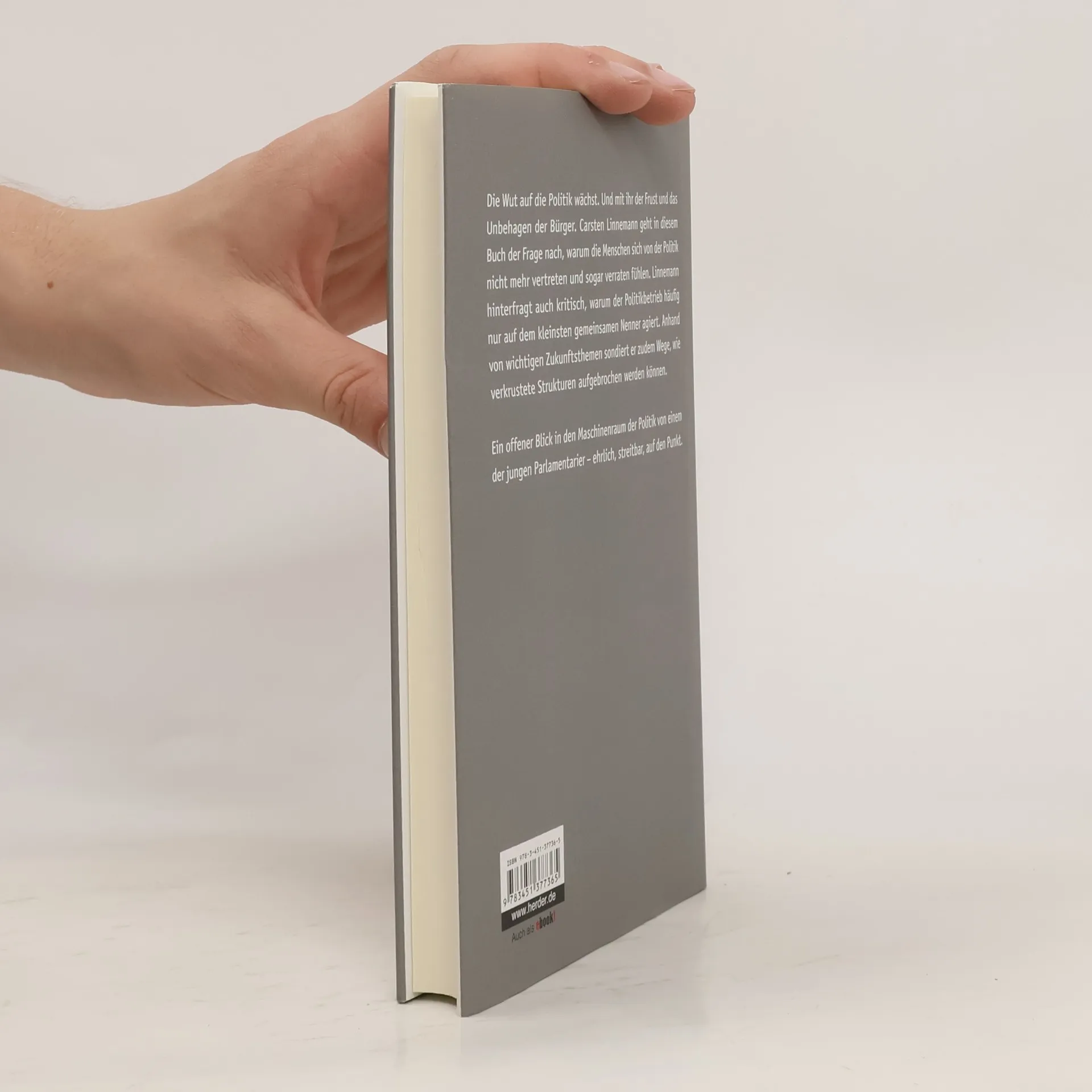 Die Wut auf die Politik wächst. Und mit ihr der Frust und das Unbehagen der Bürger. Carsten Linnemann geht in diesem Buch der Frage nach, warum die Menschen sich von der Politik nicht mehr vertreten oder gar von ihr verraten fühlen. Doch bei dieser mit vielen anschaulichen Beispielen illustrierten Analyse bleibt es nicht. Linnemann hinterfragt auch kritisch, warum der Politikbetrieb häufig auf dem kleinsten gemeinsamen Nenner agiert oder in die Symbolpolitik flüchtet. Anhand von wichtigen Zukunftsthemen sondiert er zudem Wege, wie das verkrustete Politiksystem aufgebrochen werden kann. Ein offener Blick in den Maschinenraum der Politik von einem der jungen Bundestagsparlamentarier der CDU – ehrlich, streitbar, auf den Punkt.