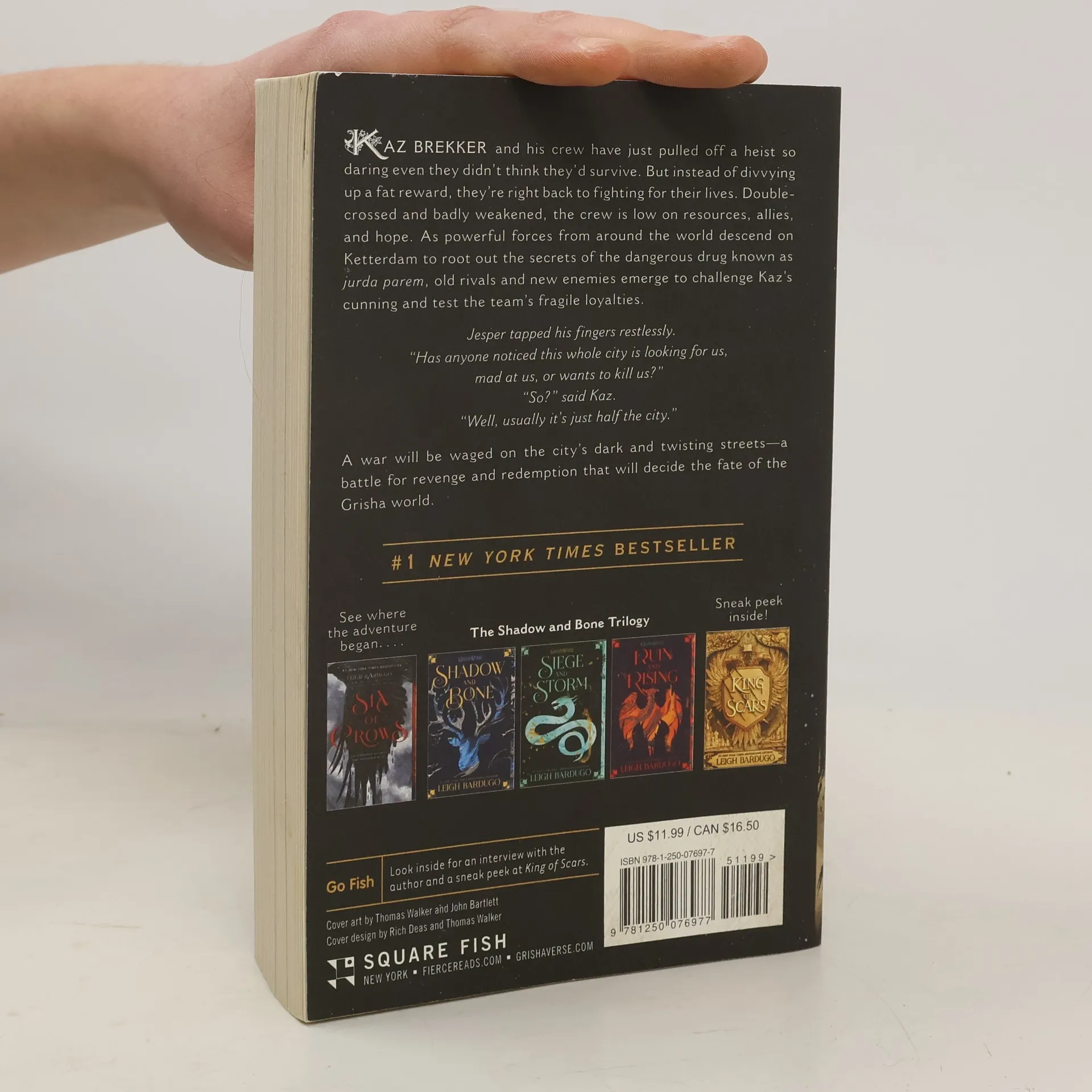 When you can’t beat the odds, change the game. Kaz Brekker and his crew have just pulled off a heist so daring even they didn't think they'd survive. But instead of divvying up a fat reward, they're right back to fighting for their lives. Double-crossed and badly weakened, the crew is low on resources, allies, and hope. As powerful forces from around the world descend on Ketterdam to root out the secrets of the dangerous drug known as jurda parem, old rivals and new enemies emerge to challenge Kaz's cunning and test the team's fragile loyalties. A war will be waged on the city's dark and twisting streets—a battle for revenge and redemption that will decide the fate of the Grisha world.