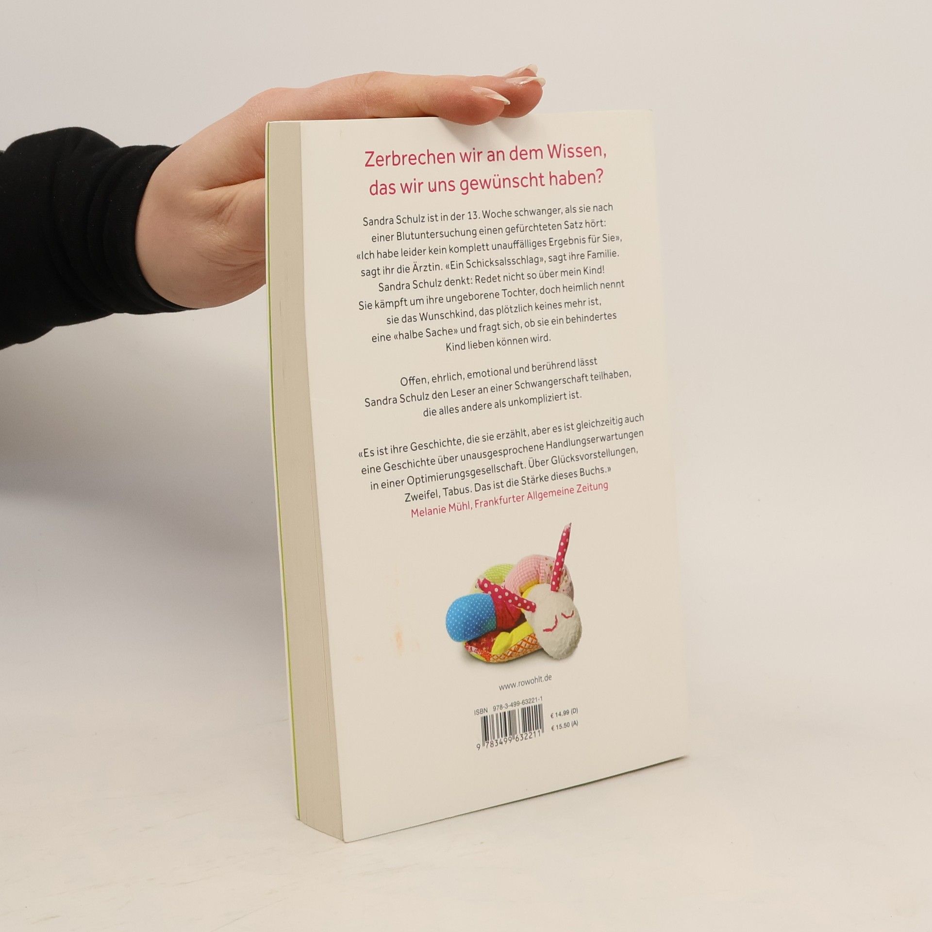 Zerbrechen wir an dem Wissen, das wir uns gewünscht haben?Sandra Schulz ist in der 13. Woche schwanger, als sie nach einer Blutuntersuchung einen gefürchteten Satz hört: «Ich habe leider kein komplett unauffälliges Ergebnis für Sie», sagt ihr die Ärztin. «Ein Schicksalsschlag», sagt ihre Familie. Sandra Schulz denkt: Redet nicht so über mein Kind! Sie kämpft um ihre ungeborene Tochter, doch heimlich nennt sie das Wunschkind, das plötzlich keines mehr ist, eine «halbe Sache» und fragt sich, ob sie ein behindertes Kind lieben können wird.Offen, ehrlich, emotional und berührend lässt Sandra Schulz den Leser an einer Schwangerschaft teilhaben, die alles andere als unkompliziert ist.