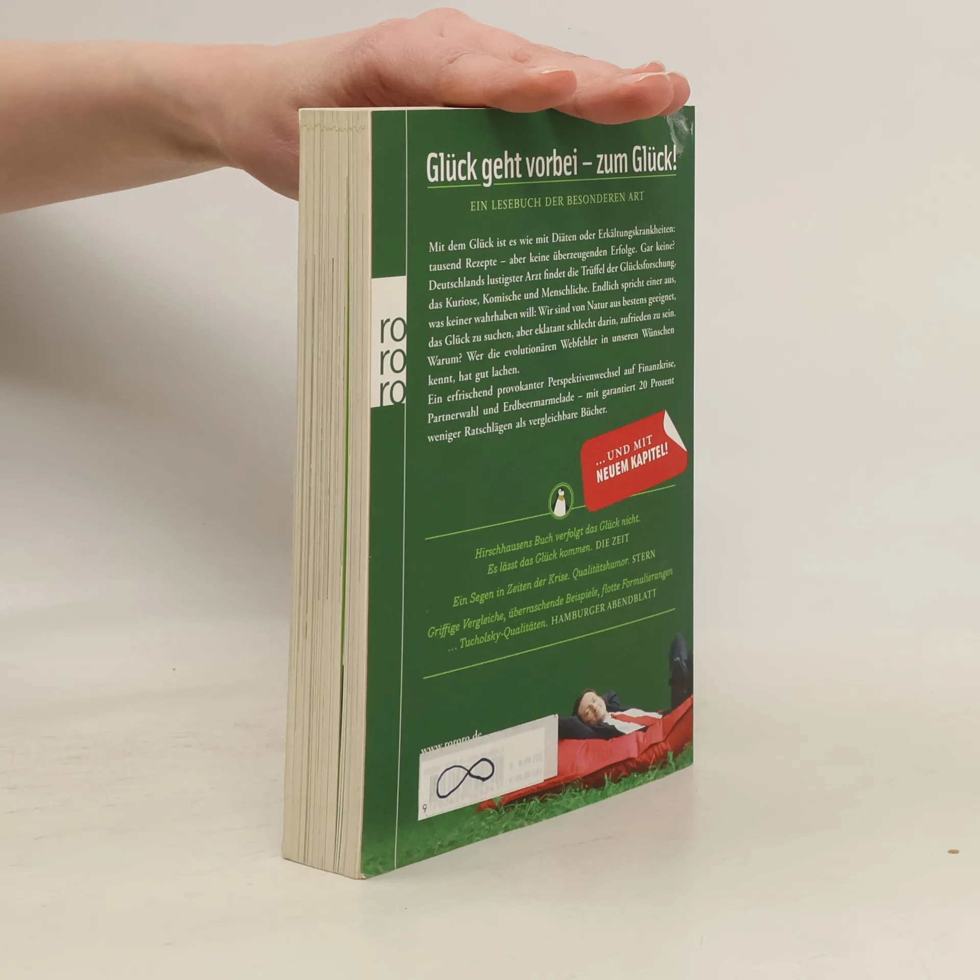 Der Bestseller mit neuem Kapitel!Glück geht vorbei – zum Glück!Ein Lesebuch der besonderen ArtMit dem Glück ist es wie mit Diäten oder Erkältungskrankheiten: tausend Rezepte – aber keine überzeugenden Erfolge. Gar keine? Deutschlands lustigster Arzt findet die Trüffel der Glücksforschung, das Kuriose, Komische und Menschliche. Endlich spricht einer aus, was keiner wahrhaben will: Wir sind von Natur aus bestens geeignet, das Glück zu suchen, aber eklatant schlecht darin, zufrieden zu sein. Warum? Wer die evolutionären Webfehler in unseren Wünschen kennt, hat gut lachen. Ein erfrischend provokanter Perspektivenwechsel auf Finanzkrise, Partnerwahl und Erdbeermarmelade – mit garantiert 20 Prozent weniger Ratschlägen als vergleichbare Bücher.«Hirschhausens Buch verfolgt das Glück nicht. Es lässt das Glück kommen.» Die Zeit «Ein Segen in Zeiten der Krise. Qualitätshumor.» STERN «Griffige Vergleiche, überraschende Beispiele, flotte Formulierungen …Tucholsky-Qualitäten.»Hamburger Abendblatt