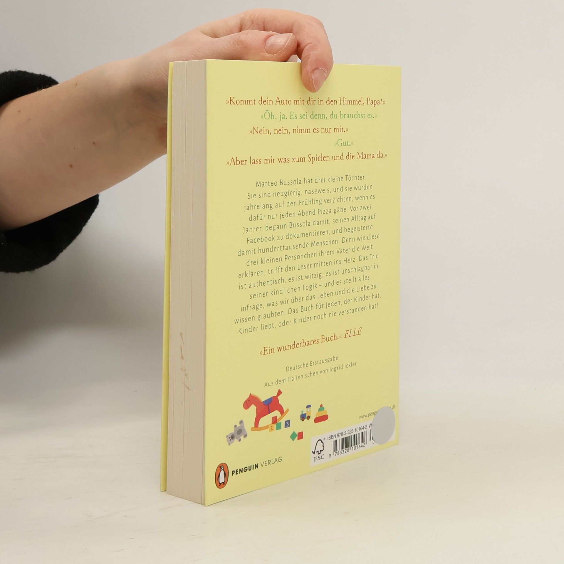 «Kommt dein Auto mit dir in den Himmel, Papa?« »Öh, ja. Es sei denn, du brauchst es.« »Nein, nein, nimm es nur mit.« »Gut.« »Aber lass mir was zum Spielen und die Mama da.« Matteo Bussola hat drei kleine Töchter. Sie sind neugierig, naseweis, und sie würden jahrelang auf den Frühling verzichten, wenn es dafür nur jeden Abend Pizza gäbe. Vor zwei Jahren begann Bussola damit, seinen Alltag auf Facebook zu dokumentieren, und begeisterte damit spontan hunderttausende Menschen. Denn wie diese drei kleinen Persönchen ihrem Vater die Welt erklären, trifft den Leser mitten ins Herz. Sie sind authentisch, sie sind witzig, sie sind unschlagbar in ihrer kindlichen Logik – und sie stellen alles infrage, was wir über das Leben und die Liebe zu wissen glaubten. Das Buch für jeden, der Kinder hat, Kinder liebt, oder Kinder noch nie verstanden hat!