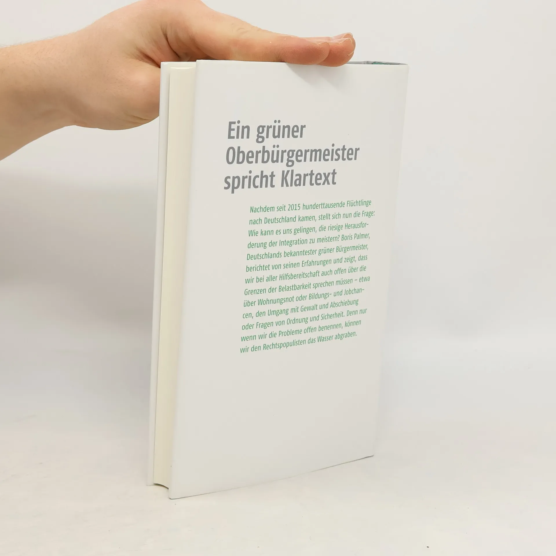 Ein grüner Oberbürgermeister spricht Klartext Nachdem Angela Merkel hunderttausende Flüchtlinge ins Land ließ, stellt sich nun die Frage: Wie kann es uns gelingen, die riesige Herausforderung der Integration zu meistern? Boris Palmer, Deutschlands bekanntester grüner Bürgermeister, zeigt, dass wir bei aller Hilfsbereitschaft auch offen über die Grenzen der Belastbarkeit sprechen müssen – etwa über Bildungs- und Jobchancen, über Wohnungsnot, den Umgang mit Gewalt und Abschiebung oder Fragen von Ordnung und Sicherheit. Denn nur wenn wir die Probleme offen benennen, können wir den Rechtspopulisten das Wasser abgraben.
