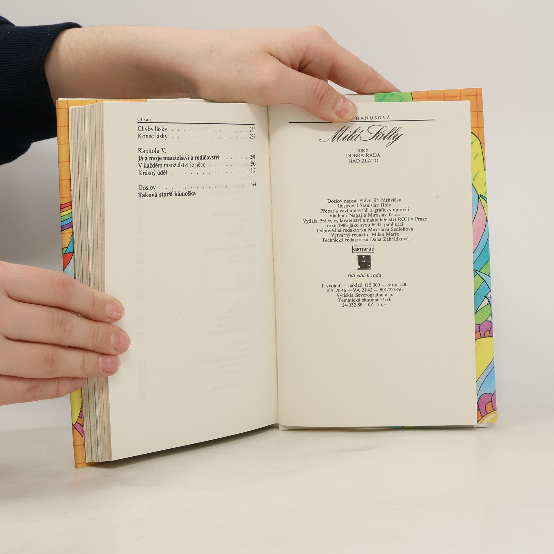 Jiřina Hanušová se svým pseudonymem 'Sally', je psycholožka zabývající se lidskými vztahy. Knížka obsahuje otázky a trápení čtenářů časopisu Mladý Svět. Přes velikou úspěšnost proto byla vydána i knížka, která obsahuje dopisy týkající se vzhledu, kamarádství, dospívání, sexu,manželství, vztahy v rodině i okolí... Neměla by chybět v knihovničce alespoň z nostalgie.