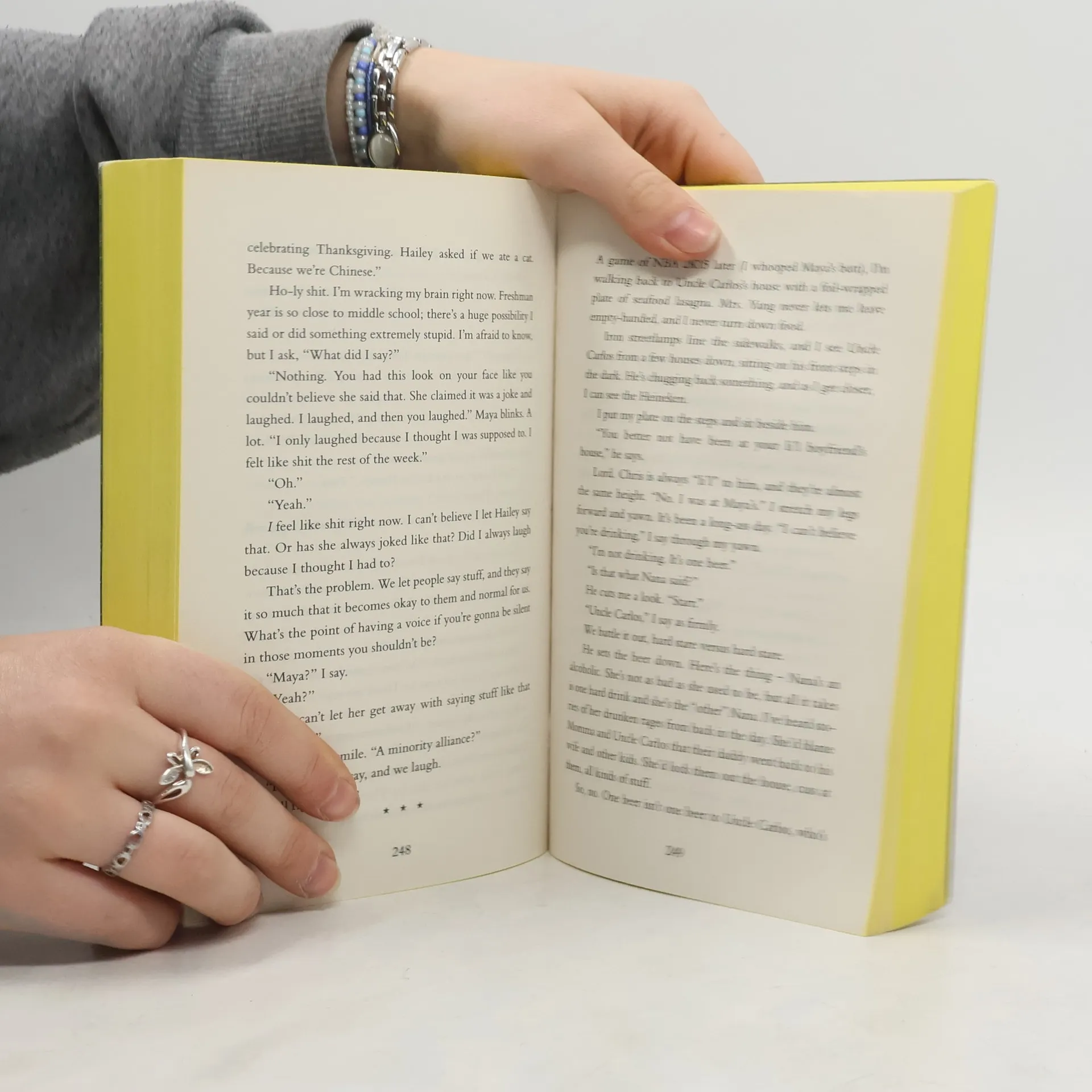 Sixteen-year-old Starr Carter moves between two worlds: the poor neighborhood where she lives and the fancy suburban prep school she attends. The uneasy balance between these worlds is shattered when Starr witnesses the fatal shooting of her childhood best friend Khalil at the hands of a police officer. Khalil was unarmed. Soon afterward, his death is a national headline. Some are calling him a thug, maybe even a drug dealer and a gangbanger. Protesters are taking to the streets in Khalil's name. Some cops and the local drug lord try to intimidate Starr and her family. What everyone wants to know is: what really went down that night? And the only person alive who can answer that is Starr. But what Starr does or does not say could upend her community. It could also endanger her life. This edition include an appendix entitled "Names Have Power," detailing the reasons Thomas chose to name different characters and places throughout the book. It also features an excerpt from her upcoming book On the Come Up as well as art inspired by The Hate U Give .