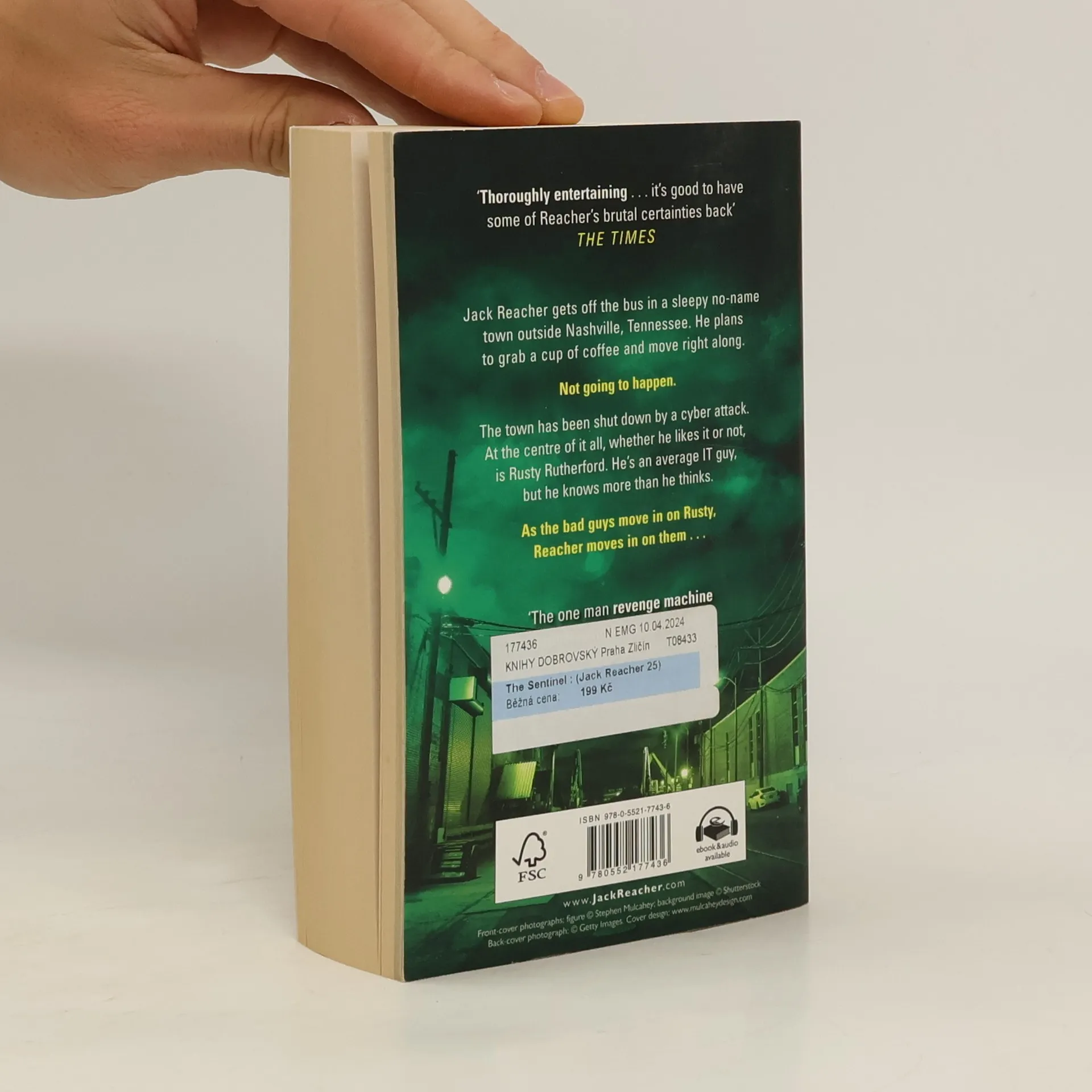 Jack Reacher gets off the bus in a sleepy no-name town outside Nashville, Tennessee. He plans to grab a cup of coffee and move right along. Not going to happen. The town has been shut down by a cyber attack. At the centre of it all, whether he likes it or not, is Rusty Rutherford. He's an average IT guy, but he knows more than he thinks. As the bad guys move in on Rusty, Reacher moves in on them . . . And now Rusty knows he's protected, he's never going to leave the big man's side.