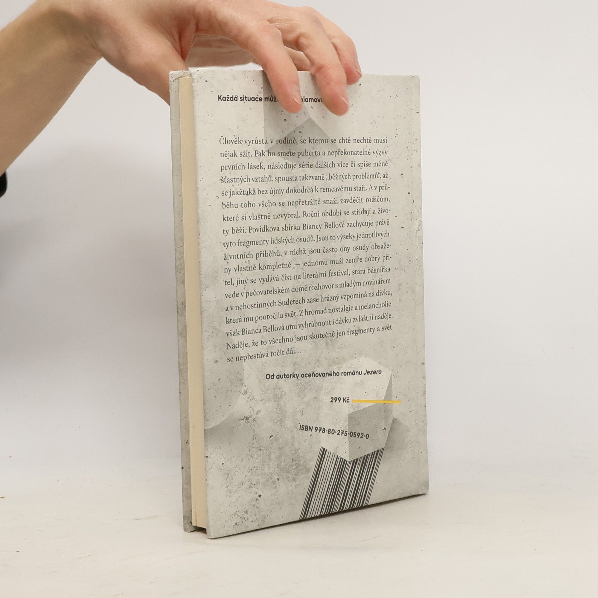 Každá situace může být přelomová… Člověk vyrůstá v rodině, se kterou se chtě nechtě musí nějak sžít. Pak ho smete puberta a nepřekonatelné výzvy prvních lásek, následuje série dalších více či spíše méně šťastných vztahů, spousta takzvaně „běžných problémů“, až se jakžtakž bez újmy dokodrcá k remcavému stáří. A v průběhu toho všeho se nepřetržitě snaží zavděčit rodičům, které si vlastně nevybral. Roční období se střídají a životy běží. Povídková sbírka Biancy Bellové zachycuje právě tyto fragmenty lidských osudů. Jsou to výseky jednotlivých životních příběhů, v nichž jsou často ony osudy obsaženy vlastně kompletně — dívka na koupališti zažije přelomovou situaci, podobně zásadní je pro jinou ženu setkání dohodnuté přes Tinder, jednomu muži zase zemře dobrý přítel, jiný se vydává číst na literární festival, stará básnířka vede v pečovatelském domě rozhovor s mladým novinářem a v nehostinných Sudetech zase jeden hrázný vzpomíná na dívku, která mu pootočila svět. Z hromad nostalgie a melancholie však Bianca Bellová umí vyhrábnout i dávku zvláštní naděje. Naděje, že to jsou všechno vážně jen fragmenty a svět se nepřestává točit dál…