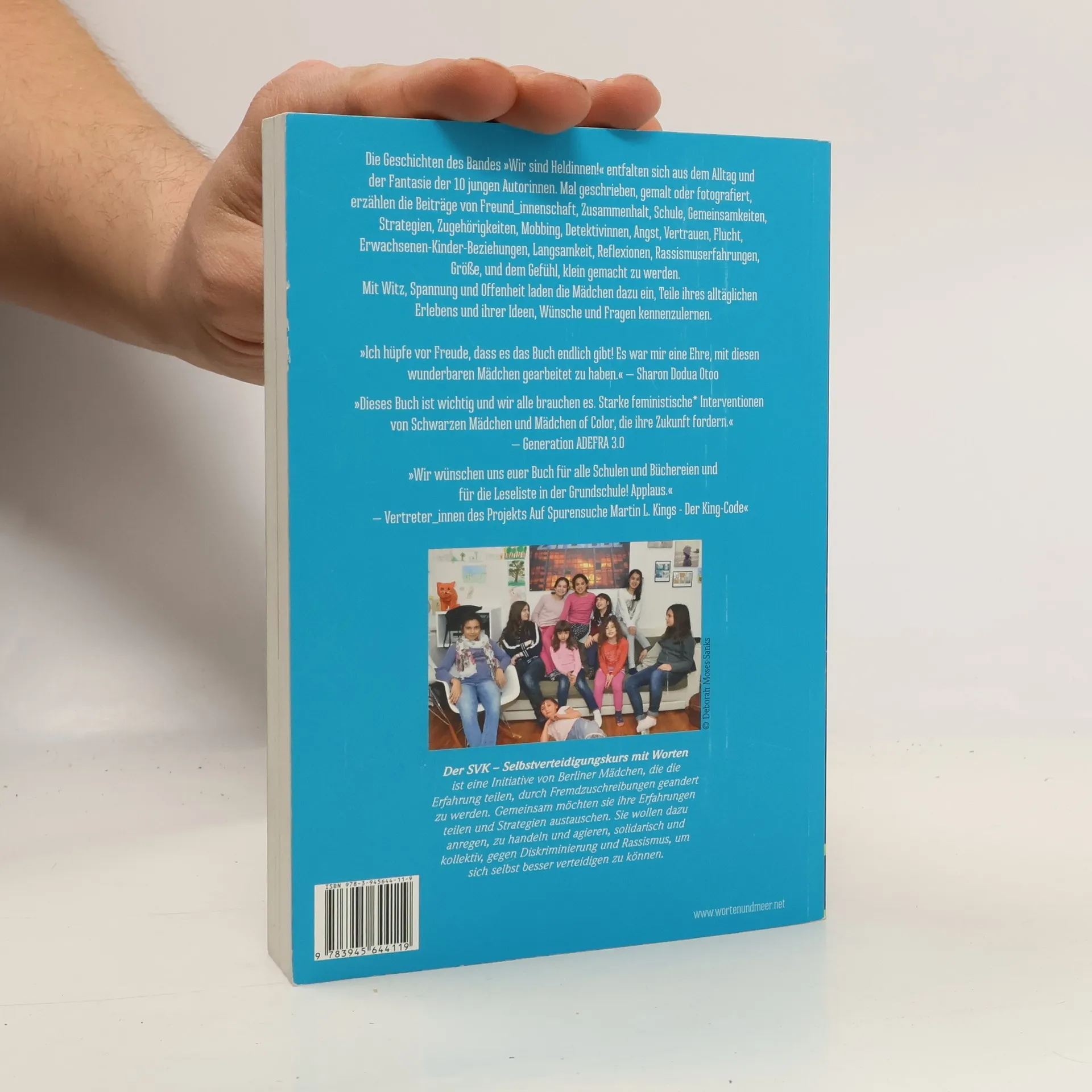 Sechs bis sechzehnjährige Mädchen haben sich zusammengeschlossen, um gegen Diskriminierung zu kämpfen – mit Worten. Seit Sommer 2015 treffen sie sich in ihrem Hauptquartier und nennen sich SVK – SelbstVerteidigungsKurs mit Worten. Diese Gruppe aus Berlin diskutiert ihre Erfahrungen mit Mobbing und Diskriminierung, die bereits für viele Kinder im Alltag präsent sind, sei es im Kindergarten oder in der Schule. Die Geschichten in diesem Band stammen von zehn jungen Autorinnen und spiegeln ihren Alltag sowie ihre Fantasie wider. Sie erzählen von Freundschaft, Zusammenhalt, Schule, Strategien gegen Mobbing, Flucht, und den Beziehungen zwischen Erwachsenen und Kindern. Mit Witz und Offenheit laden die Mädchen ein, ihre Erlebnisse, Ideen und Fragen kennenzulernen. Jede Geschichte ist einzigartig und behandelt verschiedene Themen, die die individuellen Erfahrungen und Interessen der Autorinnen widerspiegeln. Die Erzählungen thematisieren die Rolle von Herkunft, Sprache, Namen und Geschlecht sowie die Bedeutung von Familie und Freundschaft. Sie bieten vielfältige Perspektiven auf das junge Leben und beantworten die Frage, wozu es Heldinnen braucht.