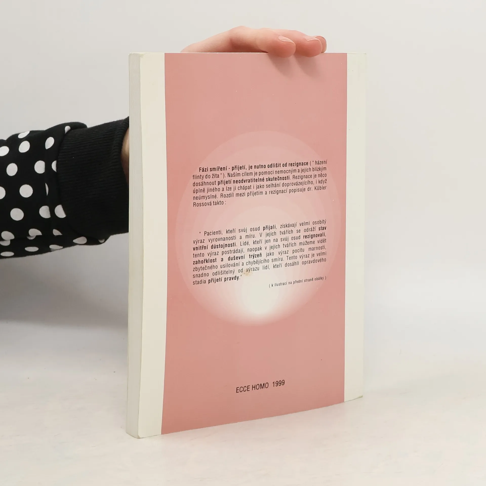 Umět se vžít do situace nemocného není snadné. Dokud to člověk sám nezažije, možná si ani dost dobře neuvědomí, co všechno pacient ztrácí. Může to být jméno, postavení, životní jistota, soukromí, stud, životní rytmus, práce, stravovací zvyklosti, volnost pohybu, možnost aktivity atd. K tomu všemu navíc přibyla bolest, slabost, obavy, nepříjemná vyšetření a možná i nepříjemní spolupacienti a mnoho dalšího, převážně také ne zrovna příjemného. Proto má nemocný právo reagovat na novou situaci i agresí, úzkostí, depresí, zmateností, poruchami chování apod. Nepřipravené okolí na takové pacientovy projevy obvykle reaguje negativně; to jeho agresivitu stále stupňuje, vzniká bludný kruh a nikomu to neprospívá. Zato dobře připravené okolí zvládne vzniklou situaci mnohem lépe a může být nemocnému obrovskou oporou a pomocí. Proto taky hospice nabízejí možnost stáží, přednášky a praktické semináře pro veřejnost. Stejný cíl sleduje i tato knížka.