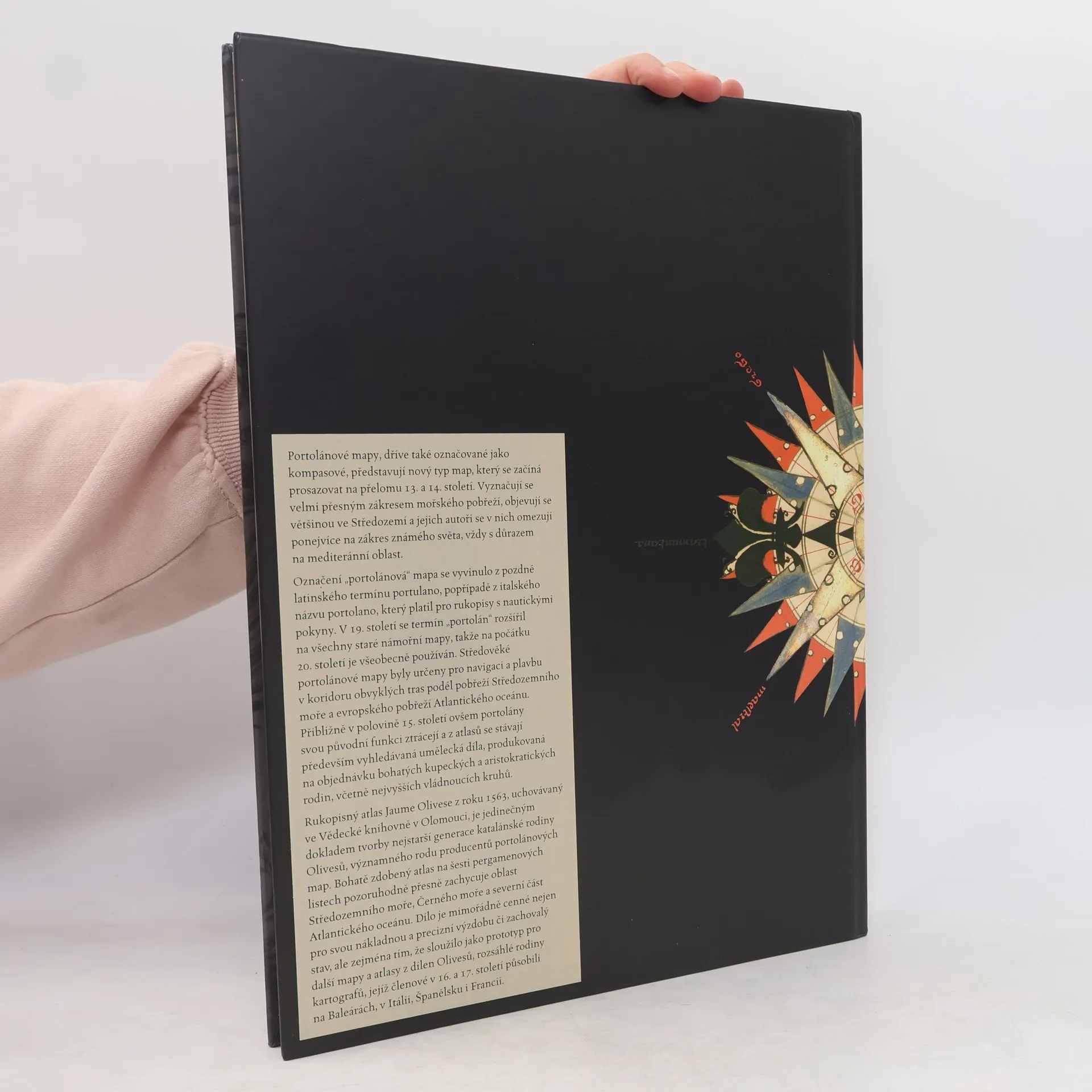 Výpravná publikace představuje vzácný rukopisný atlas portolánových map ze druhé poloviny 16. století uchovávaný Vědeckou knihovnou v Olomouci. Středověké portolány byly původně určeny pro navigaci a plavbu podél pobřeží Středozemního moře a evropského pobřeží Atlantského oceánu. Od poloviny 15. století ovšem svou původní funkci ztrácejí a z atlasů se stávají především vyhledávaná umělecká díla, produkovaná na objednávku bohatých kupeckých a aristokratických rodin. Takový je i nákladně zdobený atlas Katalánce Jaume Olivese z roku 1563, který na šesti pergamenových listech pozoruhodně přesně zachycuje oblast Středozemního a Černého moře a severní část Atlantického oceánu. Kniha je čtyřjazyčná, vedle české obsahuje také anglickou, španělskou a italskou verzi.