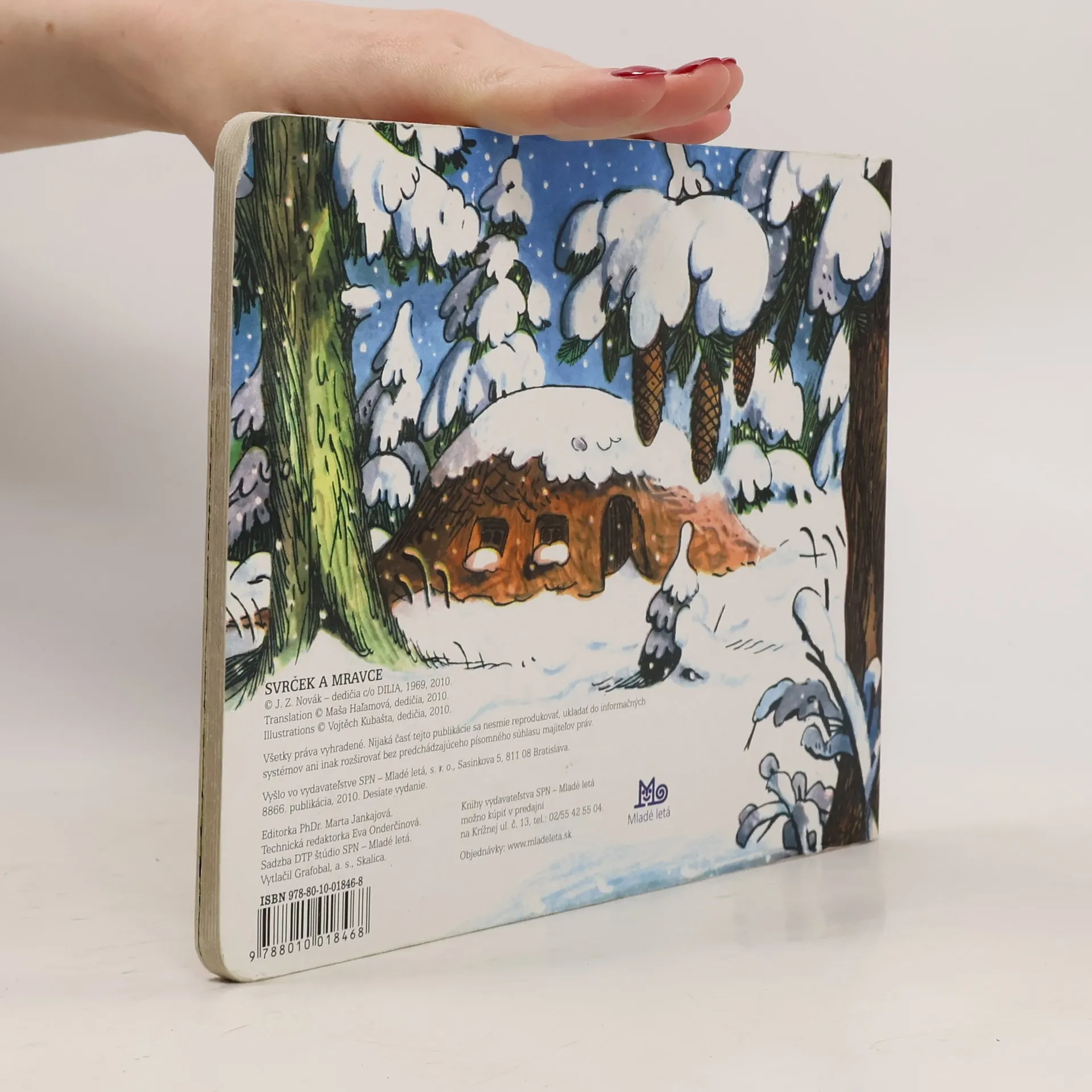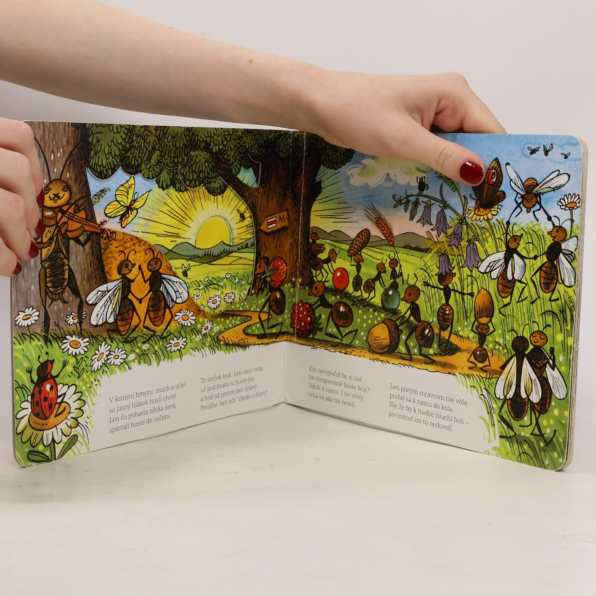 Farebné vysekávané leporelo s pestrými ilustráciami zo sveta chrobáčikov. Dojemný príbeh o ľahkovážnom svrčkovi a usilovných mravcoch skvele prebásnila slovenská poetka Maša Haľamová. Tento krásny príbeh o tom, ako si kamaráti v núdzi pomáhajú, poznajú celé generácie slovenských detí.