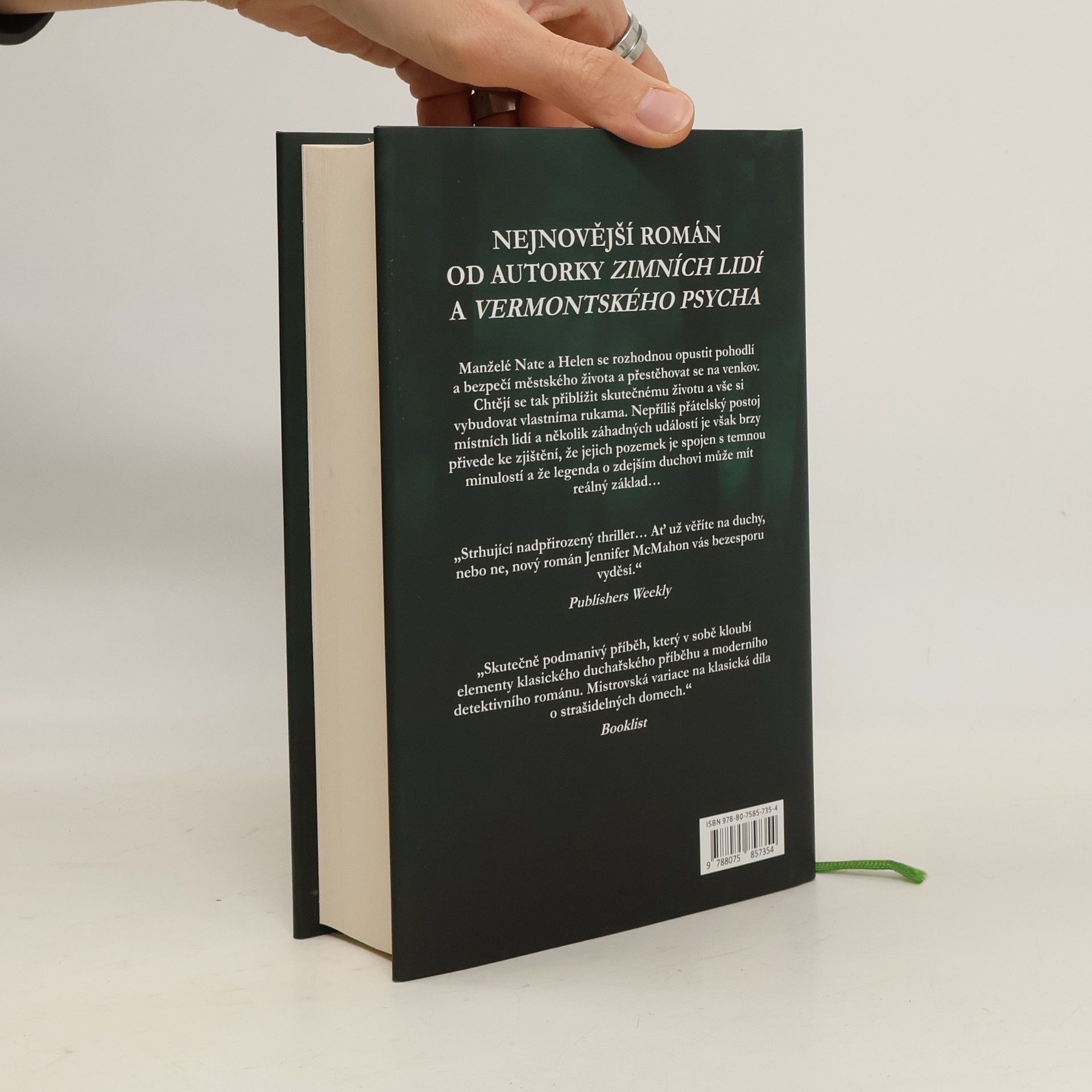 Manželská dvojice, Nate a Helen, jsou učiteli na prestižní střední škole v Connecticutu. Jednoho dne se rozhodnou opustit pohodlí a bezpečí předvídatelného městského života a přestěhovat se na venkov. Chtějí se tak přiblížit skutečnému životu a vše si vybudovat vlastníma rukama. Tady, na pozemku v divoké přírodě, začnou sami dva stavět dům svých snů. Díky ne příliš přátelskému postoji místních lidí a několika záhadným událostem však brzy zjistí, že jejich pozemek je spojen s temnou minulostí a že legenda o zdejším duchovi může mít reálný základ. Postupně vyvstává řada otázek – kdo a proč nechal na prahu balíček s podivným obsahem, kam zmizela jejich sousedka a koho má Helen zachránit – na které se snaží najít odpovědi. Je svět, který vidíme, jediným světem, nebo přírodní síly ukrývají víc, než jsme schopni poznat našimi běžnými smysly? Napětí se stupňuje, hranice mezi světy mizí. Může být duch pachatelem vraždy? Rozuzlení tohoto napínavého mysteriózního románu je vskutku překvapivé.