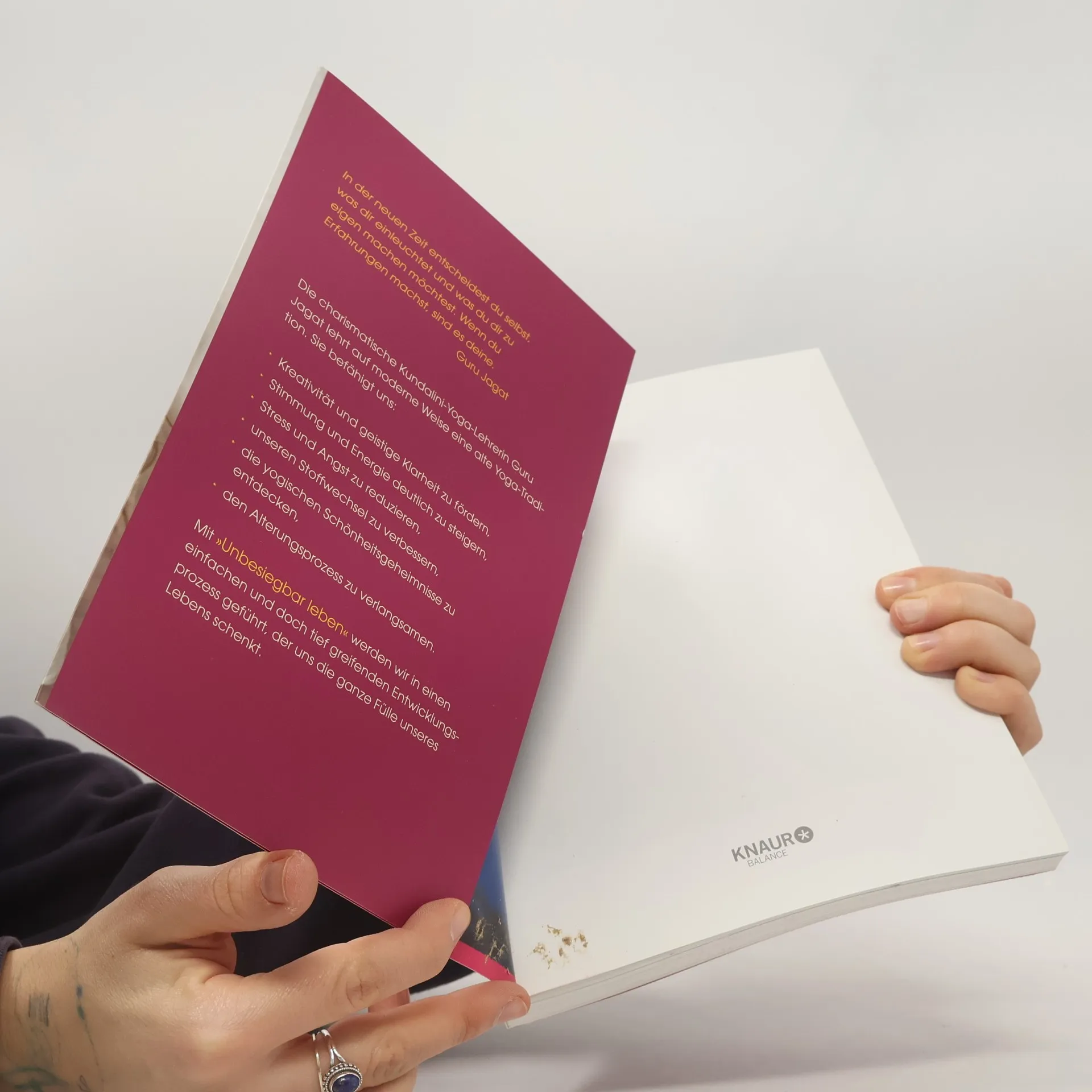Mit ihrer erfrischend ehrlichen Art animiert uns Guru Jagat Yoga in unser Leben zu integrieren – egal wie fit wir sind. Die international bekannte Kundalini-Yoga-Lehrerin zeigt einfache Stellungen, Atemübungen und kurze Meditationen, die überall praktiziert werden können. Mit ihrem besonderen Ansatz wird aus Kundalini ein Rundum-Yoga, in dem Gesundheit, psychische und geistige Kraft und spirituelles Erwachen auf einmalige Weise zusammenkommen. Sie führen zu einem authentischen und energetischen Leben im Einklang mit sich selbst. Guru Jagat lehrt auf moderne Weise eine alte Yoga-Tradition und befähigt uns: ● Kreativität und geistige Klarheit zu fördern, ● Stimmung und Energie deutlich zu steigern, ● Stress und Angst zu reduzieren, ● unseren Stoffwechsel zu verbessern, ● die yogischen Schönheitsgeheimnisse zu entdecken, ● den Alterungsprozess zu verlangsamen. Mit „Unbesiegbar leben“ werden wir in einen einfachen und doch tiefgreifenden Entwicklungsprozess geführt, der uns die ganze Fülle unseres Lebens schenkt.