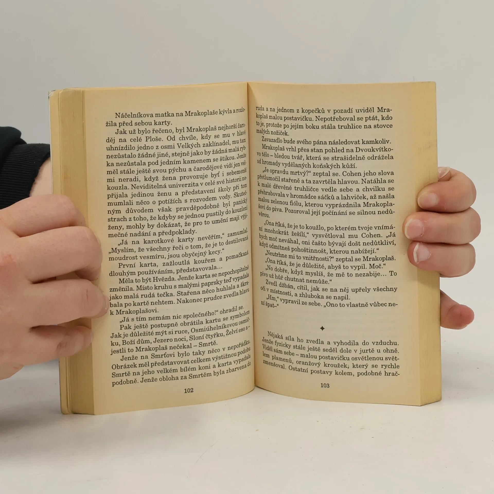 Zeměplocha se řítí k nevyhnutelné srážce se škodolibou rudou hvězdou a zachránit ji může pouze jediný člověk – neschopný a zbabělý čaroděj Mrakoplaš, který byl naposledy spatřen v okamžiku, kdy přepadl přes okraj světa... Nejlegračnější a nejpodivuhodnější fantasy v této i jakékoli jiné galaxii!!!