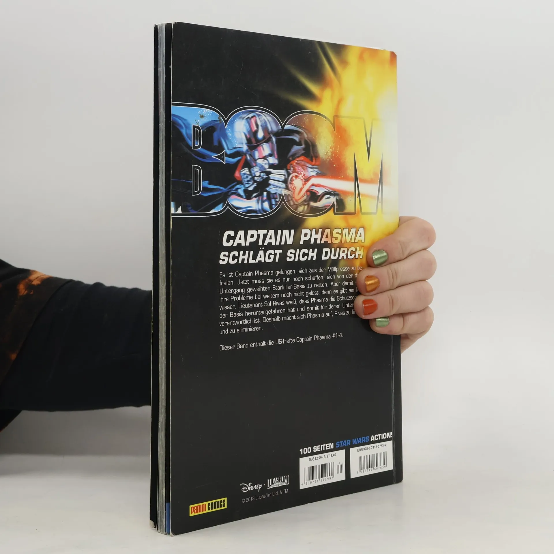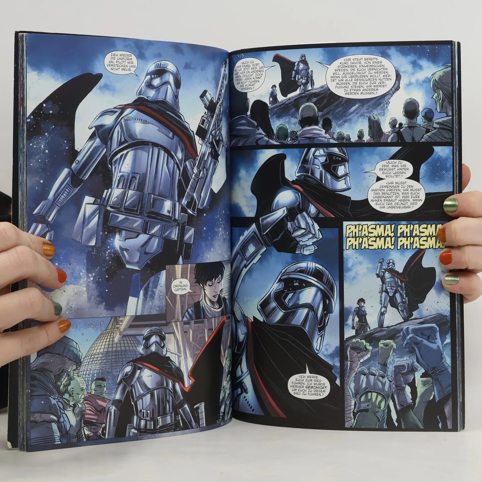 CAPTAIN PHASMA SCHLÄGT SICH DURCH Es ist Captain Phasma gelungen, sich aus der Müllpresse zu befreien. Jetzt muss sie es nur noch schaffen, sich von der dem Untergang geweihten Starkiller-Basis zu retten. Aber damit sind ihre Probleme bei weitem noch nicht gelöst, denn es gibt ein Mitwisser. Lieutenant Sol Rivas weiß, dass Phasma die Schutzschilde der Basis heruntergefahren hat und somit für deren Untergang verantwortlich ist. Deshalb macht sich Phasma auf, Rivas zu finden und zu eliminieren. Dieser Band enthält die US-Hefte Captain Phasma #1-4.