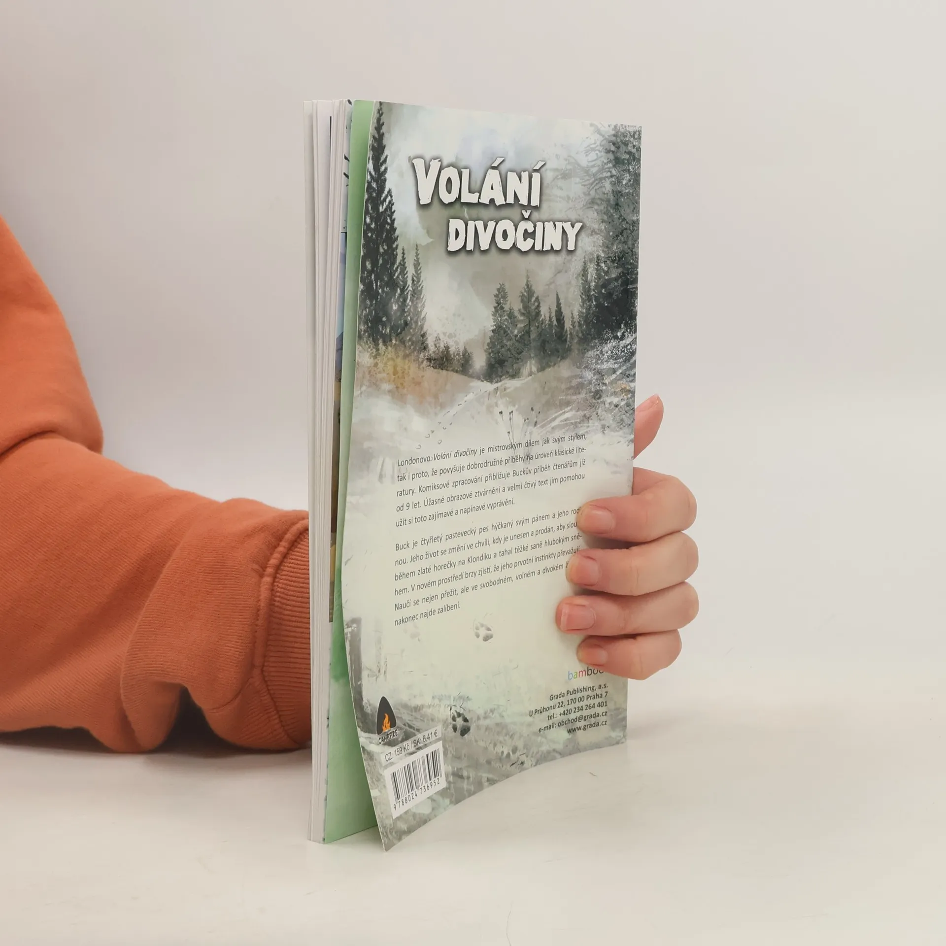 Londonovo Volání divočiny je mistrovským dílem jak svým stylem, tak i proto, že povyšuje dobrodružné příbehy na úroveň klasické literatury. Komiksové zpracování přibližuje Buckův příběh čtenářům již od 9 let. Úžasné obrazové ztvárnění a velmi čtivý text jim pomohou užít si toto zajímavé a napínavé vyprávění. Buck je čtyřletý pastevecký pes hýčkaný svým pánem a jeho rodinou. Jeho životse změní ve chvíly, kdy je unesen a prodán, aby služil během zlaté horečky na Klondiku a tahal těžké sáně hlubokým sněhem. V novém prostředí brzy zjistí, že jeho prvotní instinkty převažují. Naučí se nejen přežít, ale ve svobodném, volném a divoém životě nakonec najde zalíbení.