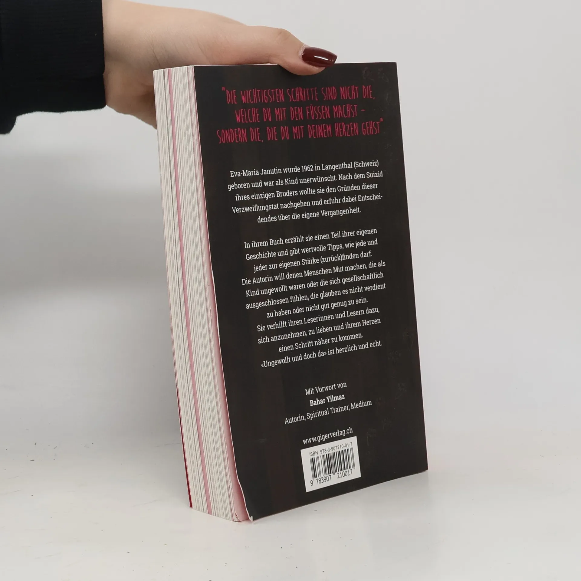 Eva-Maria Janutin wurde 1962 in Langenthal (Schweiz) geboren und war als Kind unerwünscht. Nach dem Suizid ihres einzigen Bruders wollte sie den Gründen dieser Verzweiflungstat nachgehen und erfuhr dabei Entscheidendes über die eigene Vergangenheit. In ihrem Buch erzählt sie einen Teil ihrer eigenen Geschichte und gibt wertvolle Tipps, wie jede und jeder zur eigenen Stärke (zurück) finden darf. Die Autorin will denen Menschen Mut machen, die als Kind ungewollt waren oder die sich gesellschaftlich ausgeschlossen fühlen, die glauben es nicht verdient zu haben oder nicht gut genug zu sein. Sie verhilft ihren Leserinnen und Lesern dazu, sich anzunehmen, zu lieben und ihrem Herzen einen Schritt näher zu kommen. «Ungewollt und doch da» ist herzlich und echt