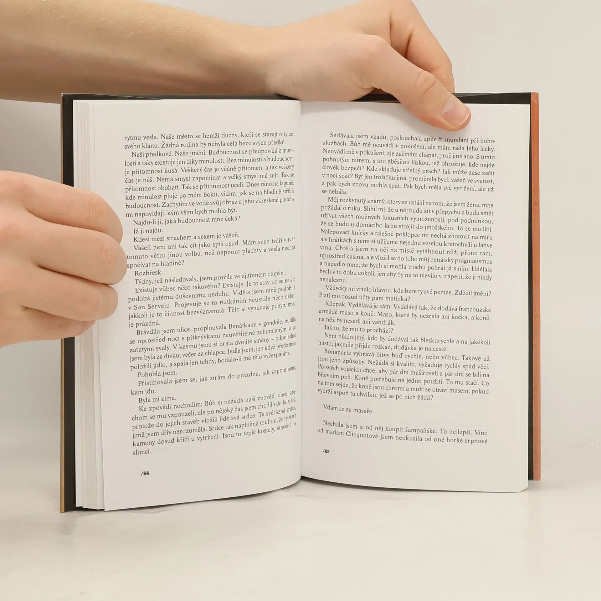 Ve své čtenářsky úspěšném románu rozehrává britská spisovatelka, která se našim čtenářům představila už svou prvotinou Na světě nejsou jen pomeranče, příběh z doby napoleonských válek. Prvním vypravěčem je mladý francouzský venkovan Henri, který nadšeně narukuje do Napoleonovy slavné armády, ale nestává se vojákem, nýbrž kuchařem a Napoleonovým pikolíkem. Druhým vypravěčem je pak svobodomyslná Benátčanka, převozníkova dcera Villanelle. Jejich životní pouti se za ruského tažení osudově protnou a mají svou dohru v Benátkách. Příběh nabývá místy rysů magického realismu.