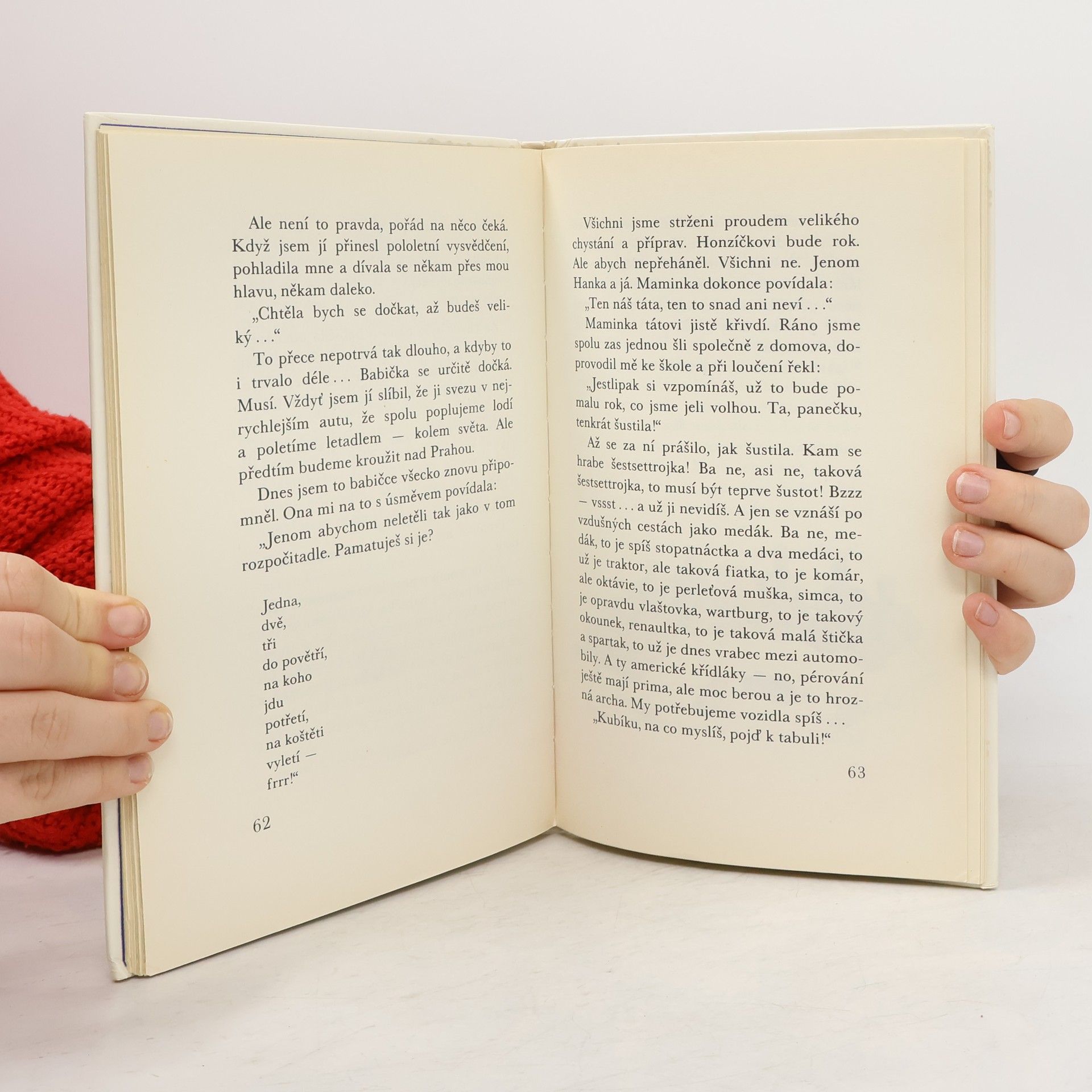 Dětská kniha líčí v pohledu školáčka, jak se svou starší sestrou uvítali v rodině nového bratříčka a co se změnilo v rodinném životě od doby, kdy táta přivezl maminku s bratříčkem z porodnice, do chvíle, kdy babička radí chlapci, jak oslavit první bratříčkovy narozeniny. Rok 1976, 1. vydání v SPN - Státní pedagogické nakladatelství, n. p., v Praze.