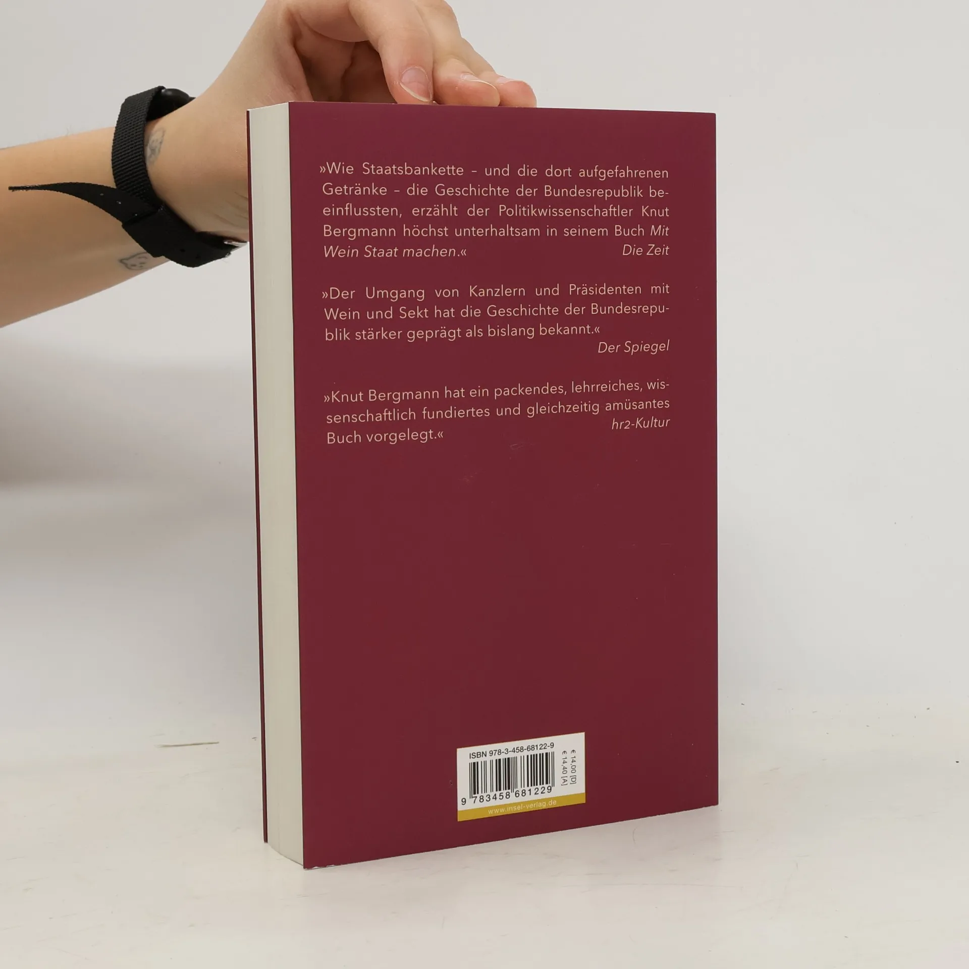 Unterhaltsam und kenntnisreich untersucht Knut Bergmann das Verhältnis von Wein und Staat, Protokoll und Politik. Er wirft einen Blick in die Gläser, auf die Teller und hinter die Kulissen der Staatsbankette der Bundesrepublik Deutschland, denn Wein und Essen samt Tischkultur und Zeremoniell spiegeln einen Teil der Kulturgeschichte unseres Landes wider: Mit Wein lässt sich Staat machen. »Knut Bergmann hat eine kenntnisreiche, kluge und immer wieder auch unterhaltsam zu lesende Geschichte von Wein und Sekt in diplomatischen Diensten geschrieben und damit ... die nicht eben übervolle Bibliothek der (politischen) Lebenskunst und (staatsmännischen) Umgangsformen in diesem Land um einen wichtigen Band bereichert.« Frankfurter Allgemeine Zeitung »Wie Staatsbankette – und die dort aufgefahrenen Getränke – die Geschichte der Bundesrepublik beeinflussten, erzählt der Politikwissenschaftler Knut Bergmann höchst unterhaltsam in seinem Buch Mit Wein Staat machen .« Die Zeit »Knut Bergmann hat ein packendes, lehrreiches, wissenschaftlich fundiertes und gleichzeitig amüsantes Buch vorgelegt.« hr2-Kultur