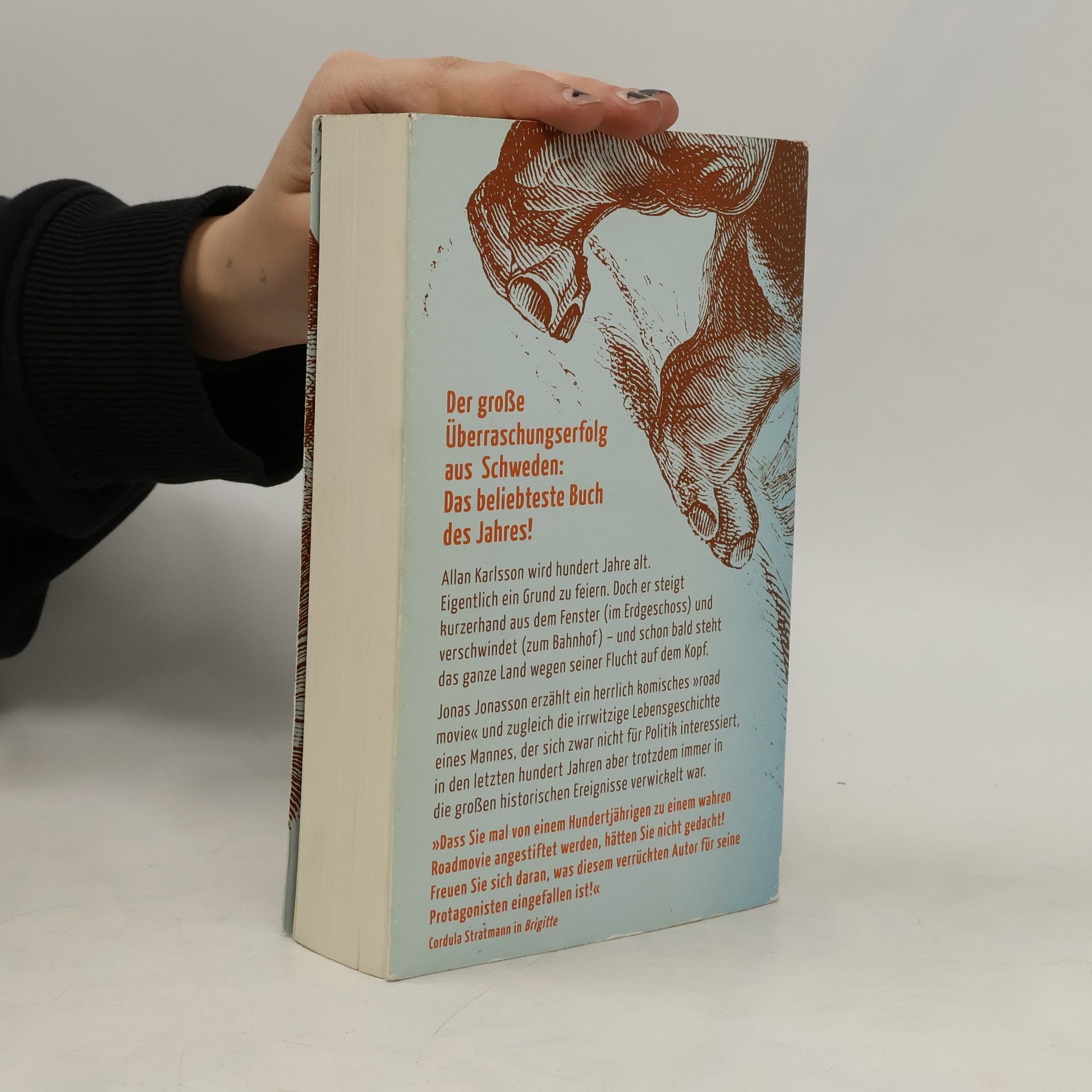 Allan Karlsson hat Geburtstag. Er wird 100 Jahre alt. Eigentlich ein Grund zu feiern. Doch während sich der Bürgermeister und die lokale Presse auf das große Spektakel vorbereiten, hat der Hundertjährige ganz andere Pläne: er verschwindet einfach – und schon bald steht ganz Schweden wegen seiner Flucht auf dem Kopf. Doch mit solchen Dingen hat Allan seine Erfahrung, er hat schließlich in jungen Jahren die ganze Welt durcheinander gebracht.Jonas Jonasson erzählt in seinem Bestseller von einer urkomischen Flucht und zugleich die irrwitzige Lebensgeschichte eines eigensinnigen Mannes, der sich zwar nicht für Politik interessiert, aber trotzdem irgendwie immer in die großen historischen Ereignisse des 20. Jahrhunderts verwickelt war.