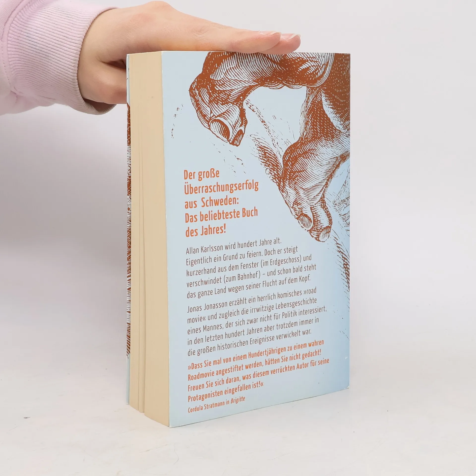 Allan Karlsson hat Geburtstag. Er wird 100 Jahre alt. Eigentlich ein Grund zu feiern. Doch während sich der Bürgermeister und die lokale Presse auf das große Spektakel vorbereiten, hat der Hundertjährige ganz andere Pläne: er verschwindet einfach – und schon bald steht ganz Schweden wegen seiner Flucht auf dem Kopf. Doch mit solchen Dingen hat Allan seine Erfahrung, er hat schließlich in jungen Jahren die ganze Welt durcheinander gebracht.Jonas Jonasson erzählt in seinem Bestseller von einer urkomischen Flucht und zugleich die irrwitzige Lebensgeschichte eines eigensinnigen Mannes, der sich zwar nicht für Politik interessiert, aber trotzdem irgendwie immer in die großen historischen Ereignisse des 20. Jahrhunderts verwickelt war.