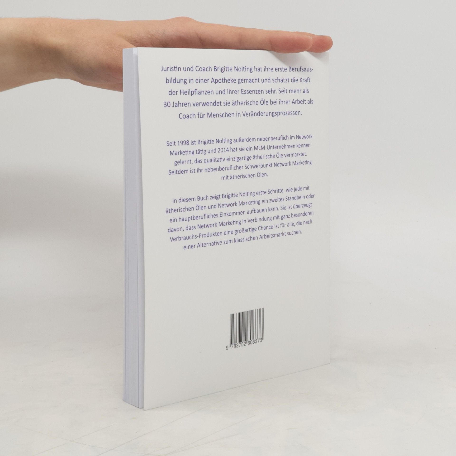 Brigittte Nolting erklärt in diesem Buch zum einen die Grundlagen von Network Marketing (MLM), wie man am besten damit beginnt und was man auf jeden Fall beachten sollte, wenn man in diesem Geschäft erfolgreich werden will. Zum anderen enthält das Buch umfassendes Basiswissen über ätherische Öle, ihren Anbau und den richtigen Erntezeitpunkt sowie ihre Destillation und vor allem die vielfältigen Verwendungsmöglichkeiten. Das Buch enthält viele Rezepte mit ätherischen Ölen für Küche, Haushalts-, Körper- und Tierpflege. Network Marketing ist eine großartige Geschäftsmöglichkeit, besonders in Verbindung mit ätherischen Öle sowie Gesundheits- und Wellness-Produkten, die verbraucht werden. Network Marketing ist eine attraktive Chance für alle, die nach Möglichkeiten suchen, sich selbstständig zu machen ohne große Investitionen. Oder die in der heutigen Wirtschaftssituation für sich keine Möglichkeit sehen, auf dem klassischen Arbeitsmarkt ein Einkommen zu erwirtschaften, das den gewünschten Lebensstil ermöglicht.
