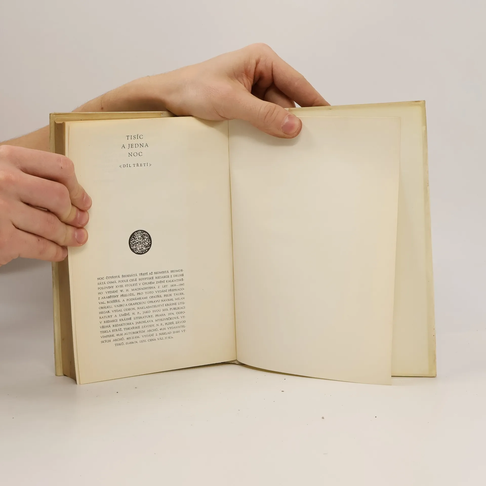 Třetí kniha z pěti. Příběhy, které vyprávěla Šahrazáda králi Šahzamánovi třetí svazek obsahuje vyprávění noci 463 až 778 – podle egyptské redakce z druhé poloviny 18. století v úplném znění kalkatského vydání – vyprávění, která se stala nedílnou součástí světového literárního dědictví a současně i inspirací pro další díla.