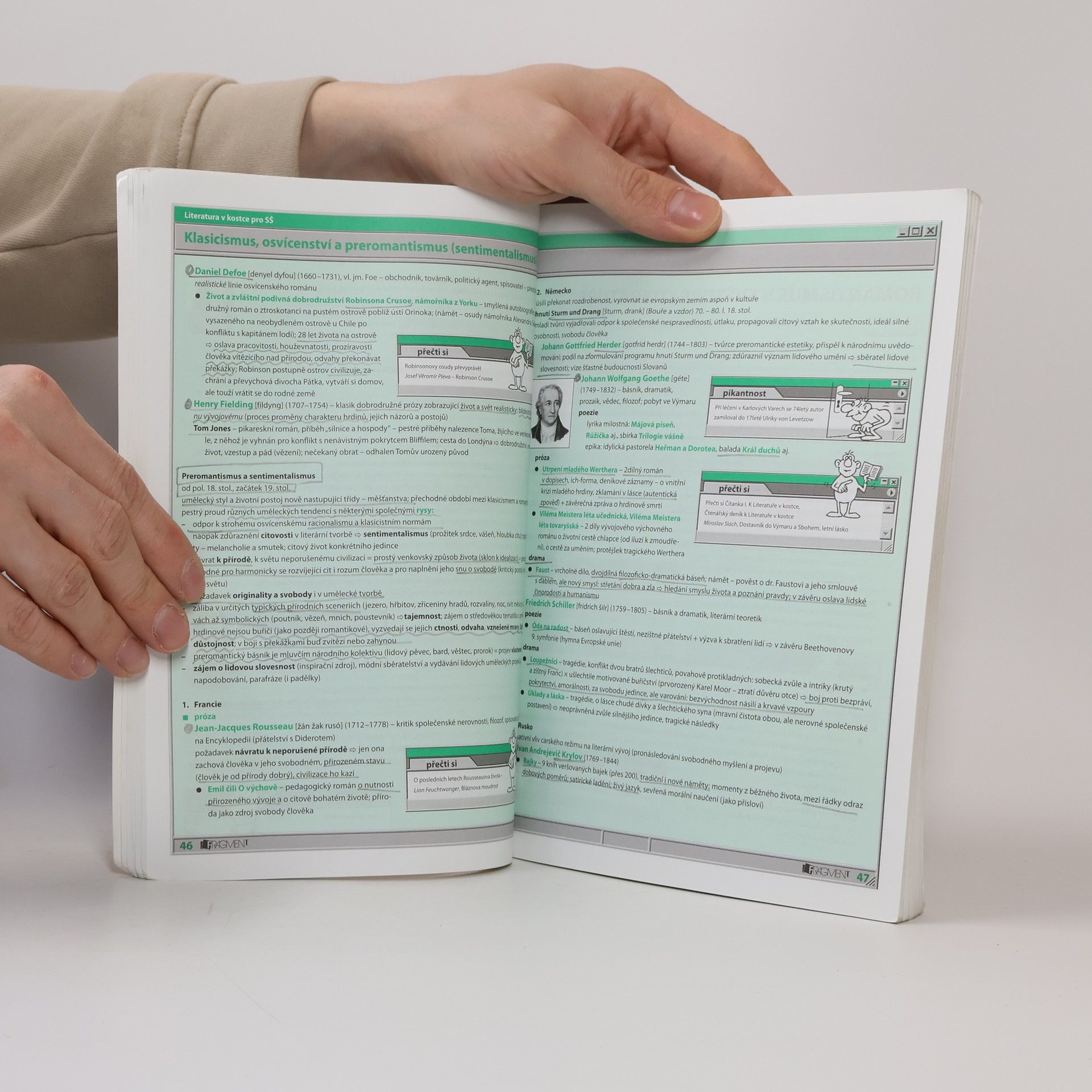 Učebnice, která přehledně shrnuje veškeré učivo světové a české literatury probírané na středních školách. Nejoblíbenější doplňková učebnice literatury připraví každého studenta nejen k maturitní zkoušce, ale i k přijímacím zkouškám na vysokou školu. Pátý dotisk 2. vydání, rok 2012. Edice: Maturita v kostce.
