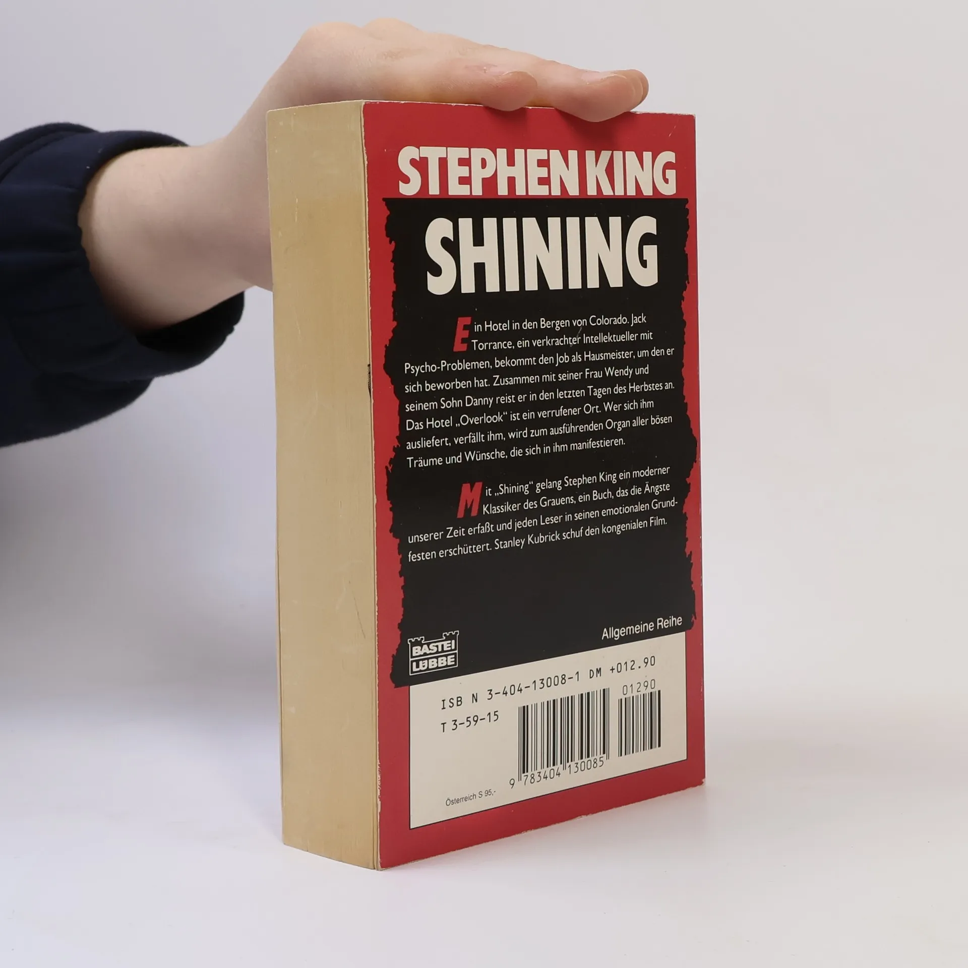 Ein Hotel in den Bergen von Colorado. Jack Torrance, ein verkrachter Intellektueller mit Psycho-Problemen, bekommt den Job als Haumeister, um den er sich beworben hat. Zusammen mit seiner Frau Wendy und seinem Sohn Danny reist er in den letzten Tagen des Herbstes an. Das Hotel "Overlook" ist ein verrufener Ort. Wer sich ihm ausliefert, verfällt ihm, wird zum ausführenden Organ aller bösen Träume und Wünsche, die sich in ihm manifestieren. Mit Shining gelang Stephen King ein moderner Klassiker des Grauens, ein Buch, das die Ängste unserer Zeit erfasst und jeden Leser in seinen emotionalen Grundfesten erschüttert.