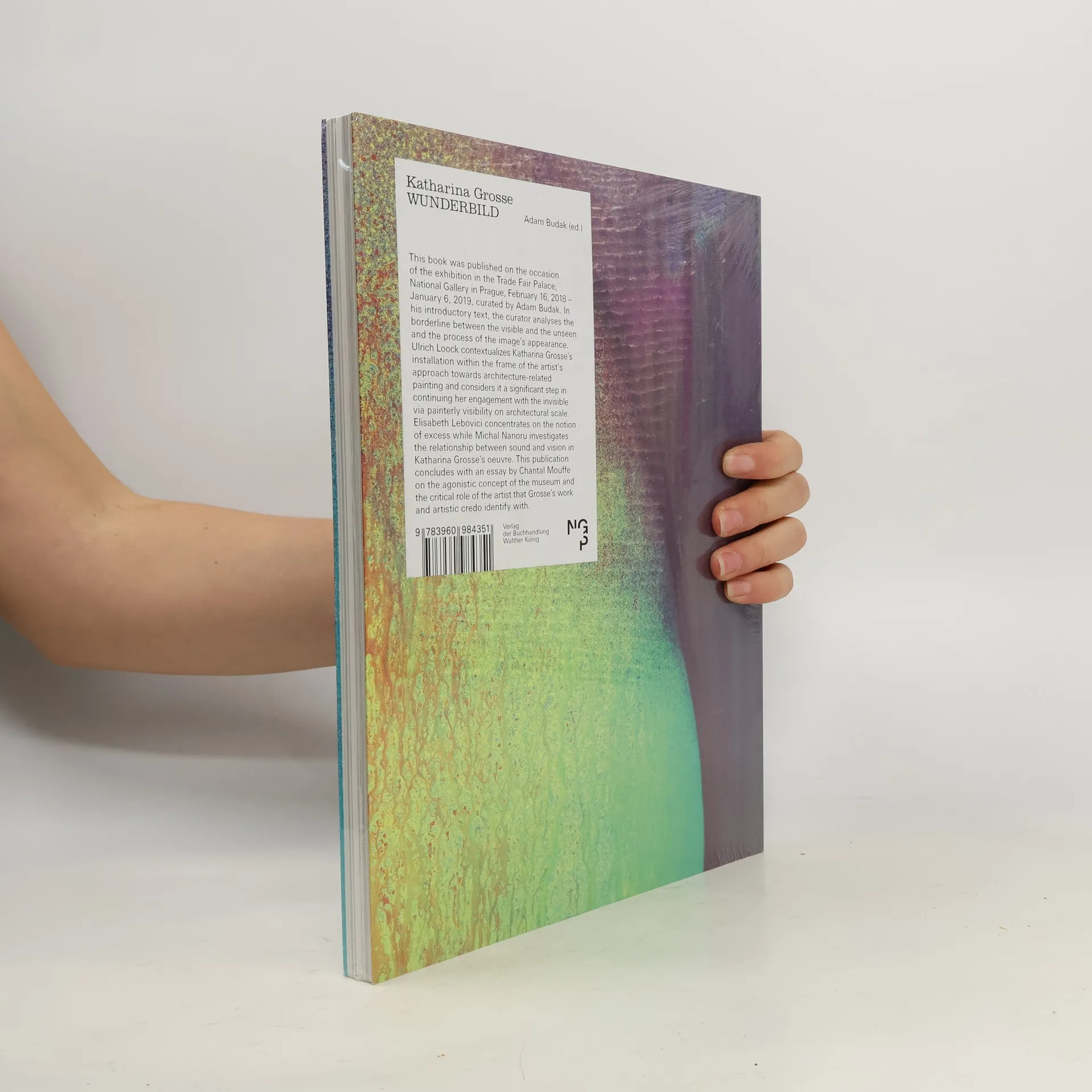 Die großformatige Installation „Wunderbild“ (2017/2018) stellt einen Wendepunkt in der Karriere der Künstlerin dar. Für den Messepalast der Nationalgalerie Prag hat Katharina Grosse eine Installation erarbeitet, die die Malerei als ein performatives und architektonisches Medium radikal neu definiert und auf den industriellen Raum der Galerie im funktionalistischen Stil der späten 1920er Jahre reagiert. Bestehend aus übereinandergesetzten Gewebestücken, die von dicken Schichten aufgesprühter Farbe bedeckt sind, erinnert das Werk an mittelalterliche Wandbilder ebenso wie an den gebärmutterartigen Raum vorantiker Höhlenmalereien. Das Buch wird durch zahlreiche Making-of-Fotografien illustriert und beleuchtet wie keines anderes die Arbeitsweise der Künstlerin. Text: Adam Budak, Elisabeth Lebovici, Ulrich Loock, Chantal Mouffe, Michal Nanoru