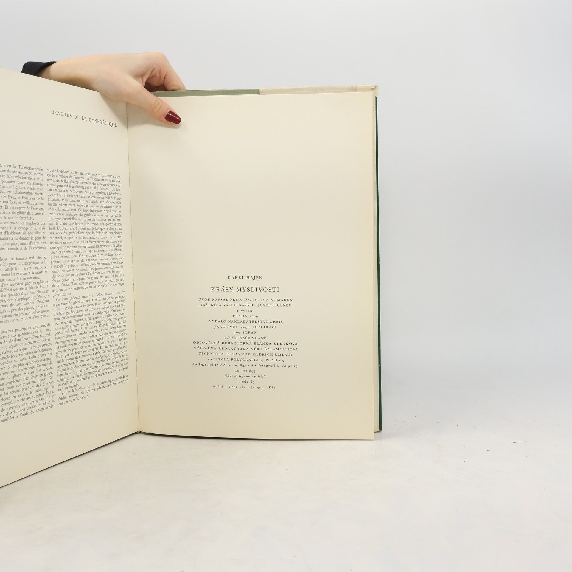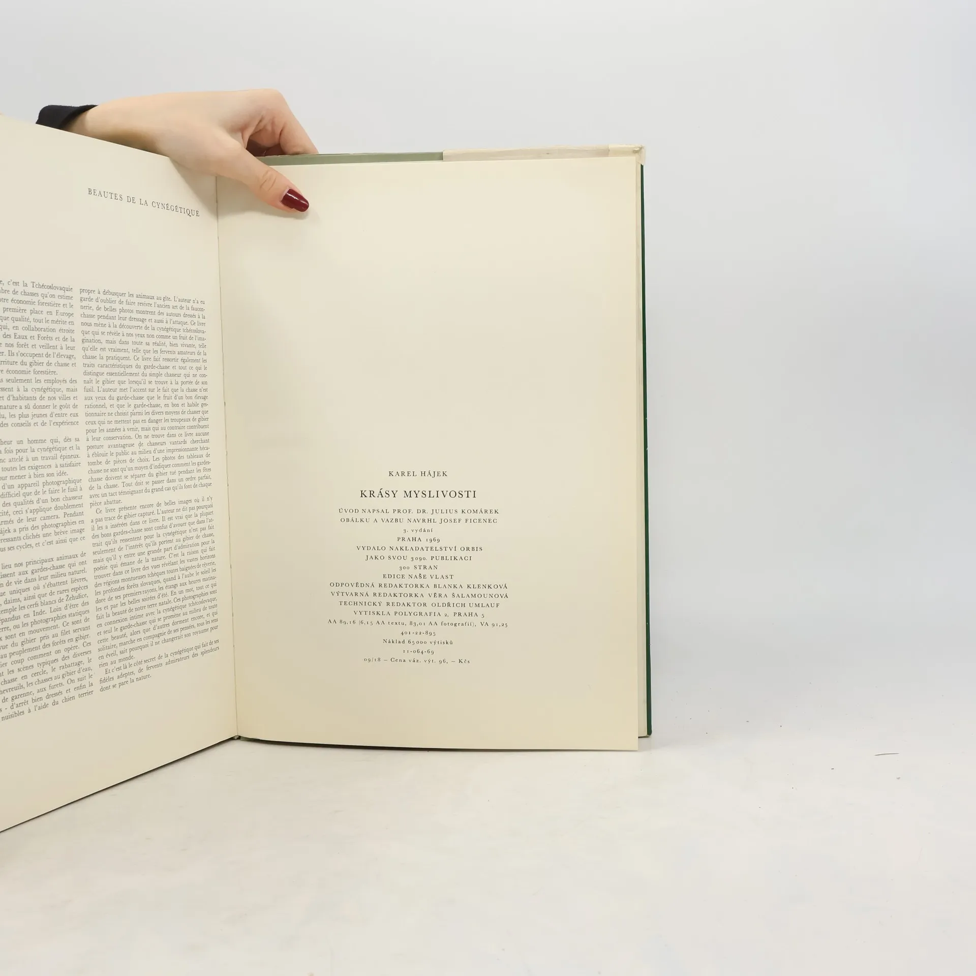 Kniha obsahuje soubor fotografií, podávajících stručný obraz československé myslivosti ve všech jejich obdobích. Snímky zachycují naše hlavní lovná zvířata (zajíce, koroptve, srnce, jeleny, vzácné oborní druhy) živá v přirozeném prostředí, jakož i různé druhy lovu, jež se uplatňujív naší myslivosti (čekaná, polní nebo lesní ploužení, česká leč, naháňky, střílení, norování, fretkování atd.). Doprovodný text podává některá vysvětlení a poučení, vztahující se k mysliveckému hospodaření.