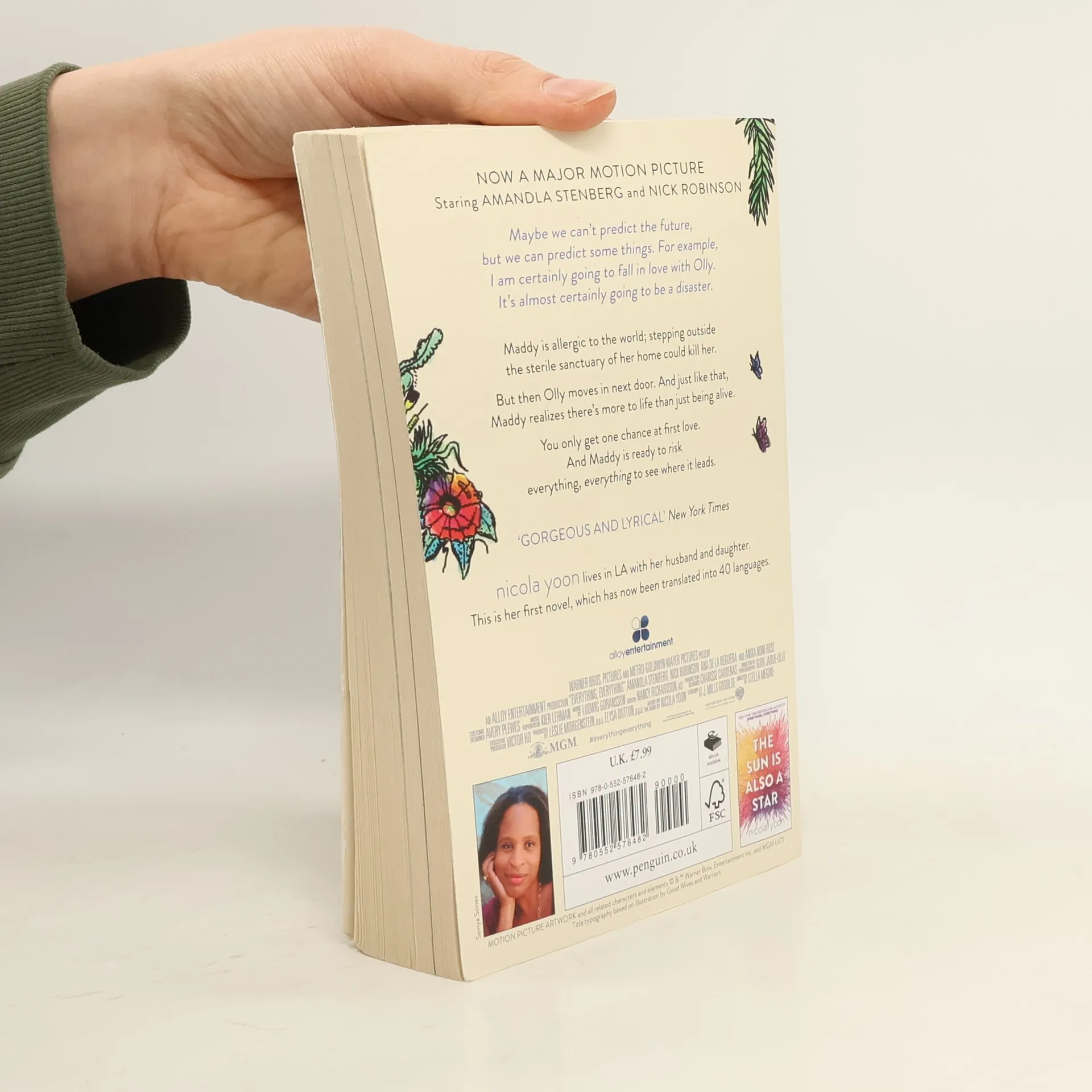 Everything, Everything is now a major motion picture starring Amanda Stenberg from The Hunger Games and Love Simon's Nick Robinson. A #1 New York Times Bestseller! 'Absolutely loved the book' - Zoella Maddy is allergic to the world; stepping outside the sterile sanctuary of her home could kill her. But then Olly moves in next door. And just like that, Maddy realizes there's more to life than just being alive. You only get one chance at first love. And Maddy is ready to risk everything, everything to see where it leads. 'Powerful, lovely, heart-wrenching, and so absorbing I devoured it in one sitting' - Jennifer Niven, author of All the Bright Places And don't miss Nicola Yoon's #1 New York Times bestseller The Sun Is Also a Star, in which two teens are brought together just when the universe is sending them in opposite directions.