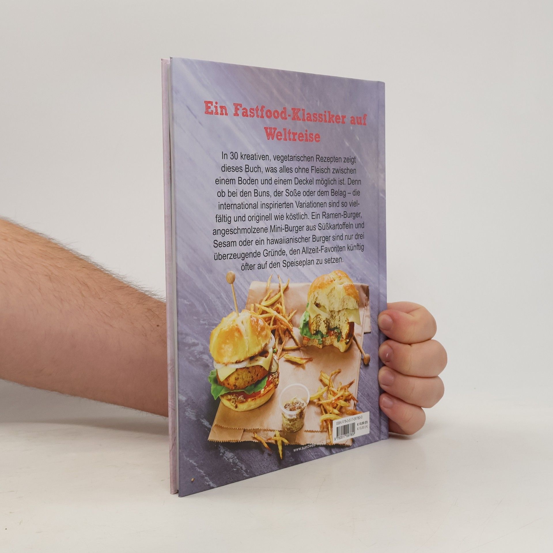 Ein Fast-Food-Klassiker auf Weltreise Dieses Buch nimmt Sie mit auf eine kulinarische Reise um die Welt. In 30 kreativen, vegetarischen Rezepten zeigt es, was alles ohne Fleisch zwischen zwei Brötchenhälften – oder auch ganz ohne Brötchen - möglich ist. Ob bei den Buns, der Soße oder dem Belag - die Variationen sind so originell wie köstlich: Der japanische Ramen-Burger, die angeschmolzenen Mini-Burger aus Süßkartoffeln und Sesam sowie der hawaiianische Burger sind nur drei Gründe, den Allzeit-Favoriten künftig öfter auf den Speiseplan zu setzen. Denn einer guter Burger geht immer! Ausstattung: mit ca. 40 Farbfotos