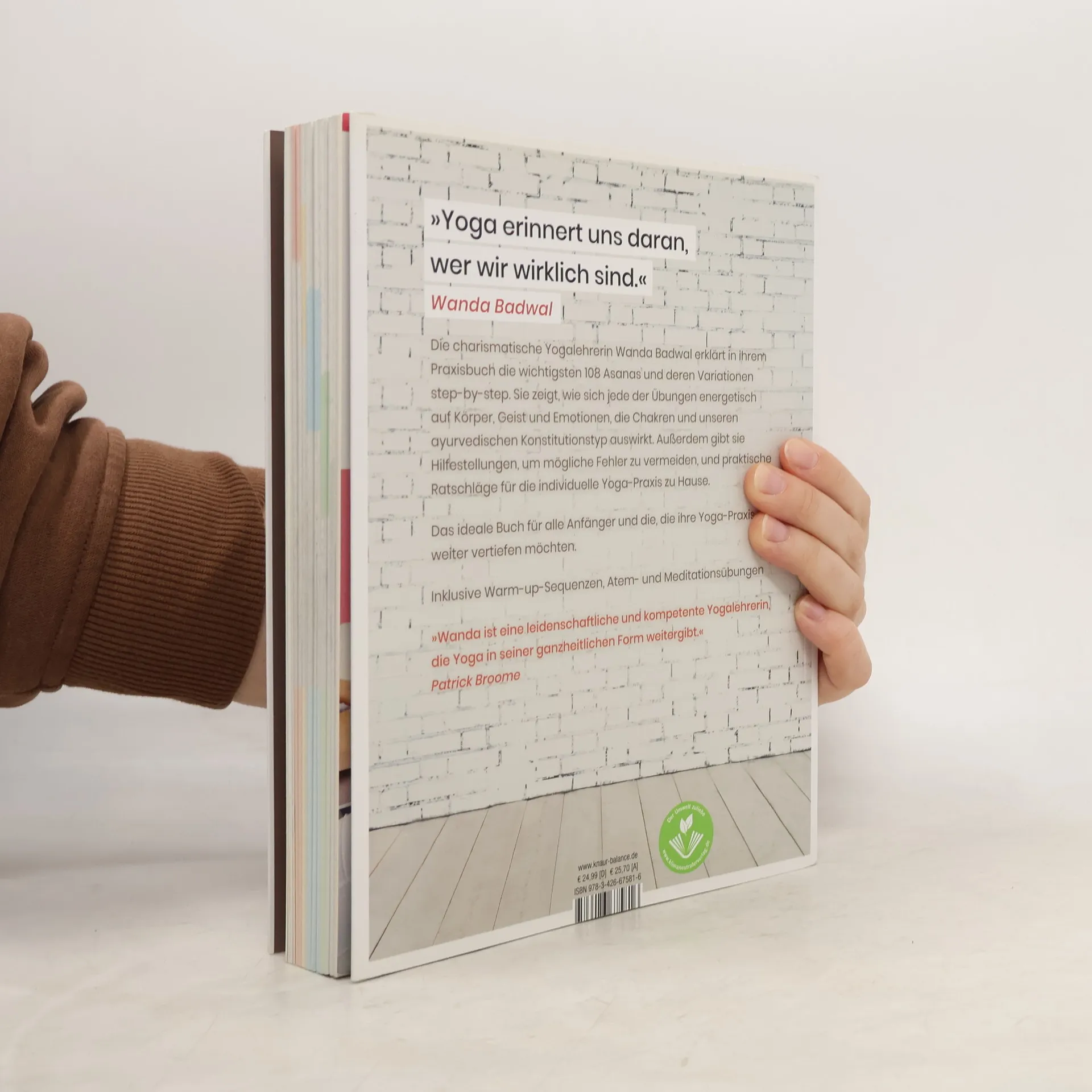 »Deine Yogamatte ist deine ganz persönliche Insel, um dir selbst zu begegnen.« Die charismatische Yoga-Lehrerin Wanda Badwal erklärt in ihrem Praxisbuch die 108 wichtigsten Asanas Schritt für Schritt und beschreibt deren ganzheitliche Wirkung. Sie bietet grundlegendes Wissen zur Geschichte des Yoga, zur Philosophie, zum Chakren-System und zum Ayurveda, was das Buch zu einem wertvollen Begleiter für alle Yogi*nis macht. Ihr Ziel ist es, das breite Spektrum des Yoga für jeden zugänglich zu machen. Anfängern erleichtern übersichtliche, bebilderte Anleitungen den Einstieg, während Fortgeschrittene ihr Wissen über die Wirkung der Asanas auf die Chakren und ihren ayurvedischen Konstitutionstyp erweitern können. Für die Praxis zuhause zeigt sie Übungen zur Wirbelsäulenmobilisation und zur Stärkung der Körpermitte. Zudem gibt sie hilfreiche Tipps zur Vermeidung möglicher Fehler und praktische Ratschläge für die individuelle Yoga-Praxis. Die Asanas sind in sechs Kapitel eingeteilt: Rückbeugen, Seitbeugen, Vorbeugen, Drehungen, Streckungen und Umkehrhaltungen. Wanda betrachtet Yoga als Weg zur Selbsterkenntnis und persönlichen Entwicklung, der zu mehr Achtsamkeit und einem erfüllten Leben führt. Das Buch ist ideal für Anfänger und alle, die ihre Praxis vertiefen möchten, inklusive Warm-up-Sequenzen, Atem- und Meditationsübungen.