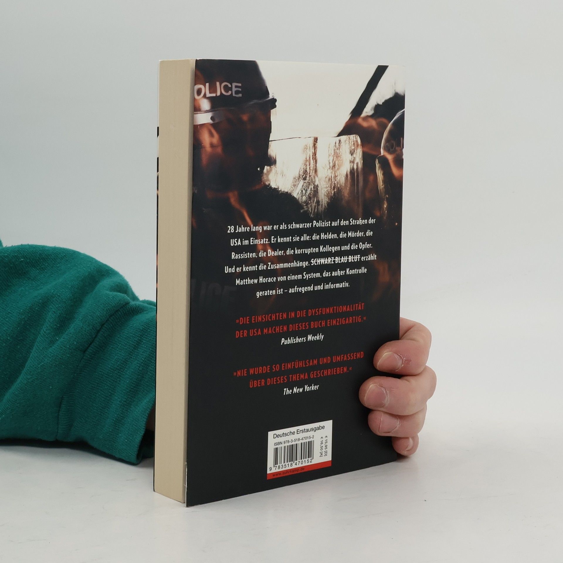 28 Jahre lang war er als schwarzer Polizist auf den Straßen der USA im Einsatz. Er kennt sie alle: die Helden, die Mörder, die Rassisten, die Dealer, die korrupten Kollegen und die Opfer. Und er kennt die Zusammenhänge. In Schwarz Blau Blut erzählt Matthew Horace von einem System, das außer Kontrolle geraten ist – actionreich und informativ. Ein Mann auf der Flucht, der mit acht Schüssen in den Rücken niedergestreckt wird, ein Obdachloser, den ein Streifenwagen erfasst, brennende Geschäfte in Ferguson, I can´t breathe, I can´t breathe … Solche Bilder aus den USA gehen mit erschreckender Regelmäßigkeit um die Welt, gefolgt von schockiertem Entsetzen. Doch die richtige Frage stellt im Anschluss niemand: Was verursacht die Gewalt ? Schwarz Blau Blut gibt darauf eine Antwort. Ein heftiges Buch von der Front, von einem, der beide Seiten kennt. Für alle, die verstehen wollen, warum so viele schwarze Menschen unschuldig sterben.