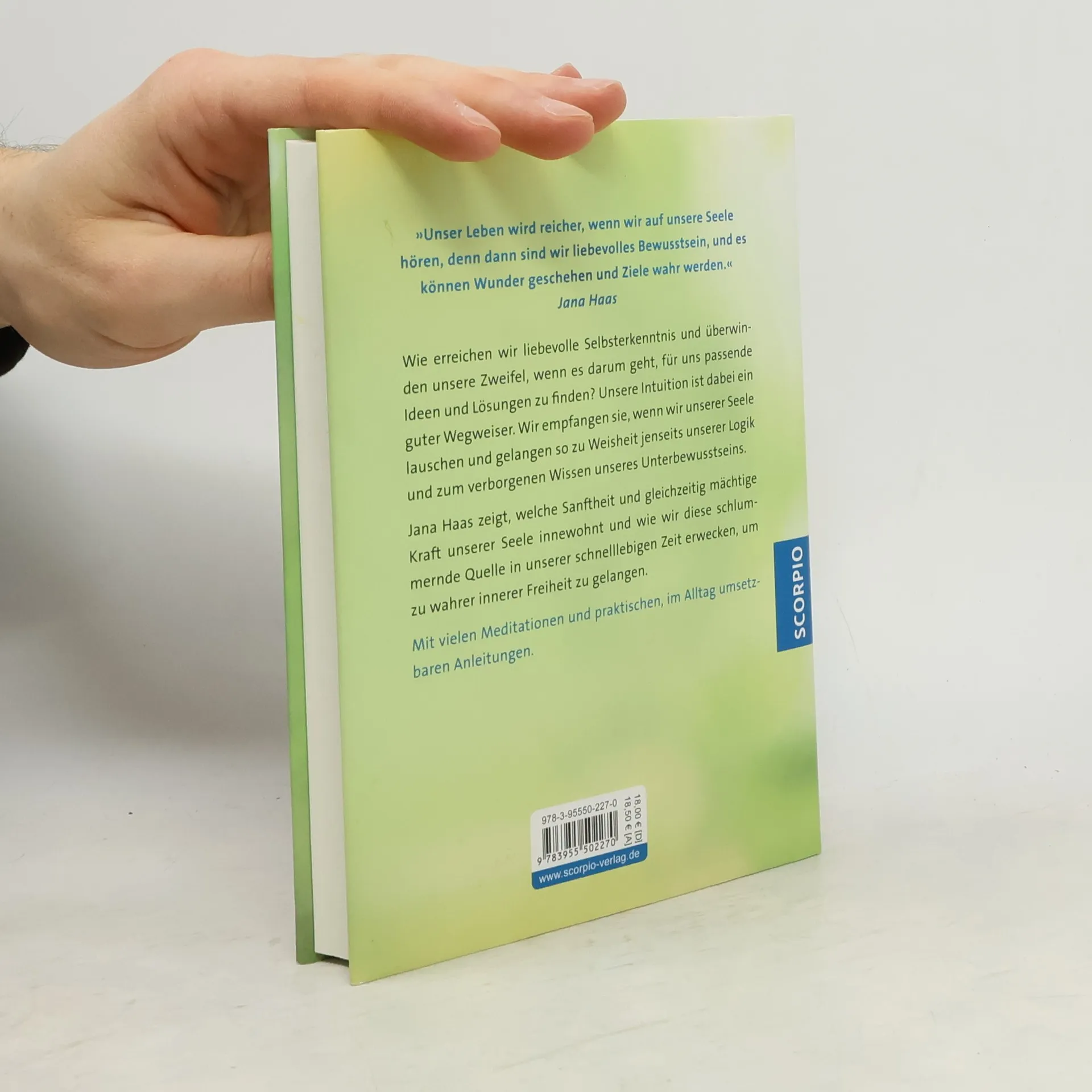 Wie erreichen wir liebevolle Selbsterkenntnis und überwinden unsere Zweifel, wenn es darum geht, die für unser Leben passenden Ideen und Lösungen zu finden? Unsere Intuition ist uns dabei ein guter Wegweiser. Wir empfangen sie über unser Herz und gelangen so zu Weisheit jenseits der Logik und zum verborgenen Wissen unseres Unterbewusstseins. In unserer schnelllebigen Zeit wird das »Seelenhören« jedoch zu häufig vernachlässigt. Bestsellerautorin Jana Haas zeigt uns, welche Sanftheit und gleichzeitig mächtige Kraft unserer Seele innewohnt und wie wir diese schlummernde Kraftquelle in uns erwecken. Mit vielen Meditationen und auch im Alltag umsetzbaren Anleitungen.