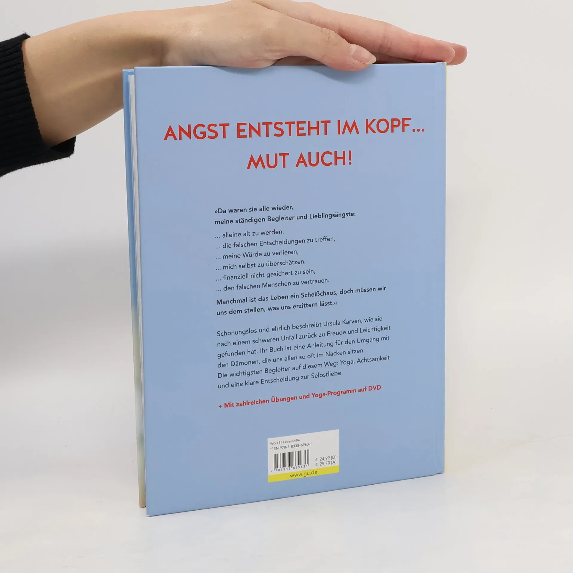 Es gibt Gedanken, die uns in Panik versetzen: die Angst vor Verlust, negativer Beurteilung, Misserfolg und Einsamkeit. Ursula Karven verkörpert innere Stärke und den Mut, nach Rückschlägen wieder aufzustehen und diese Kraft weiterzugeben. In ihrem neuen Werk zeigt sie, wie wir unsere Sorgen erkennen und auflösen können – Tag für Tag. Durch die Entwicklung innerer Stärke und Gelassenheit verlieren Ängste ihren Einfluss auf uns. So können wir das tun, was wir wirklich wollen, und unserer Bestimmung folgen, ohne von Furcht geleitet zu werden. Zusätzlich bietet das Buch Yoga-Übungen zum Download an. Karven, eine der ersten Yoga-Pionierinnen in Deutschland, betrachtet Yoga als ihre wichtigste Kraftquelle. Ihre speziell entwickelten Übungen helfen, sich zu erden und im Hier und Jetzt zu leben. Angst manifestiert sich oft in muskulären Verspannungen, die durch Yoga gezielt gelöst werden können, während eine regelmäßige Praxis auch eine positive Lebenseinstellung fördert. Das Buch wird durch persönliche Geschichten aus Karvens Leben lebendig und authentisch. Zudem kommen Experten zu Wort, die wissenschaftliche Informationen über Schmerz, Furcht und die Kraft positiver Energie teilen, darunter Ärzte, Therapeuten, Coaches und Yogalehrer.