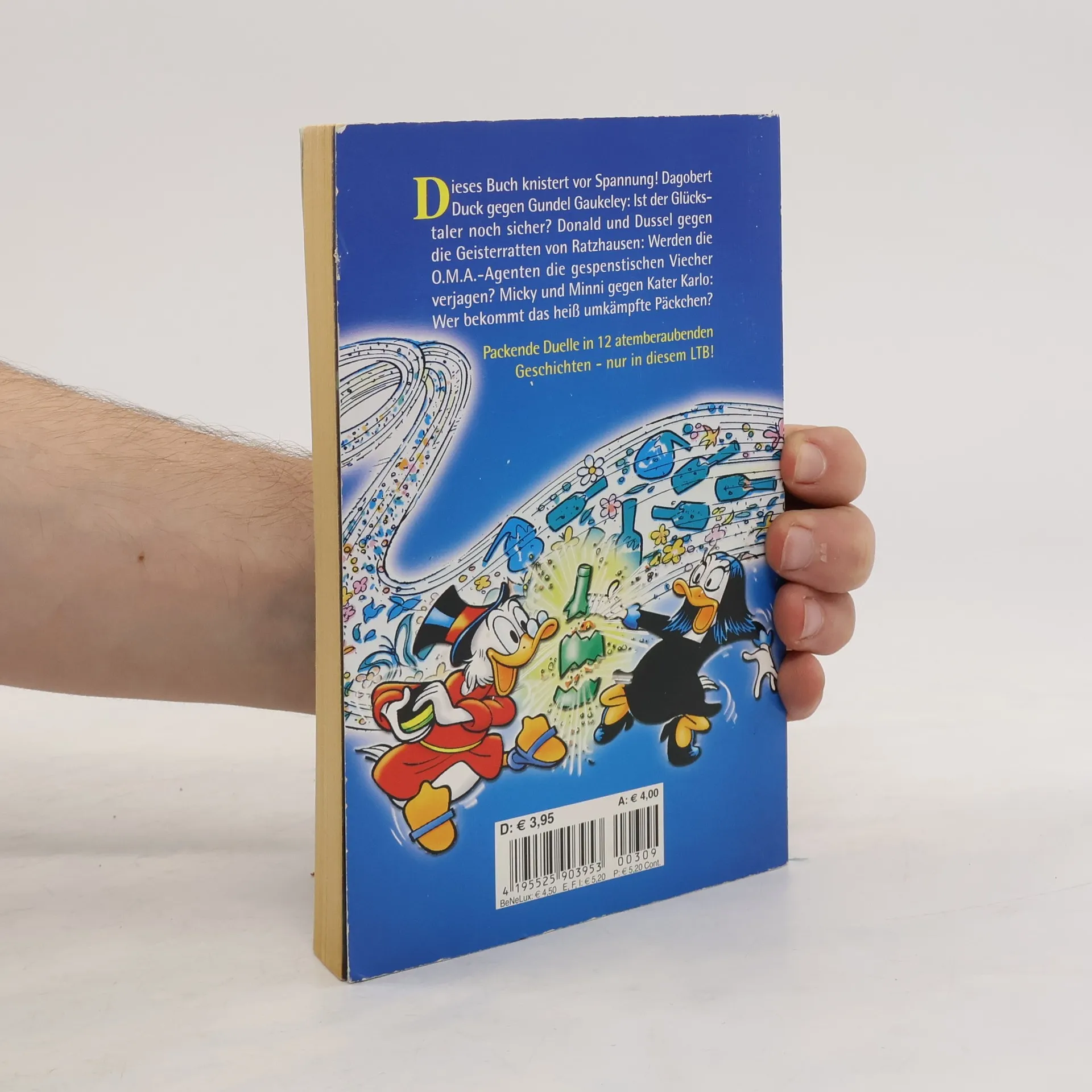 Diese Buch knistert vor Spannung! Dagobert Duck gegen Gundel Gaukeley: Ist der Glückstaler noch sicher?Donald und Dussel gegen die Geisterratten von Ratzhausen: Werden die O.M.A.-Agenten die gespenstischen Viecher verjagen? Micky und Minnie gegen Kater Karlo: Wer bekommt das heiß umkämpfte Päckchen?Packende Duelle in 12 atemberaubenden Geschichten - nur in diesem LTB