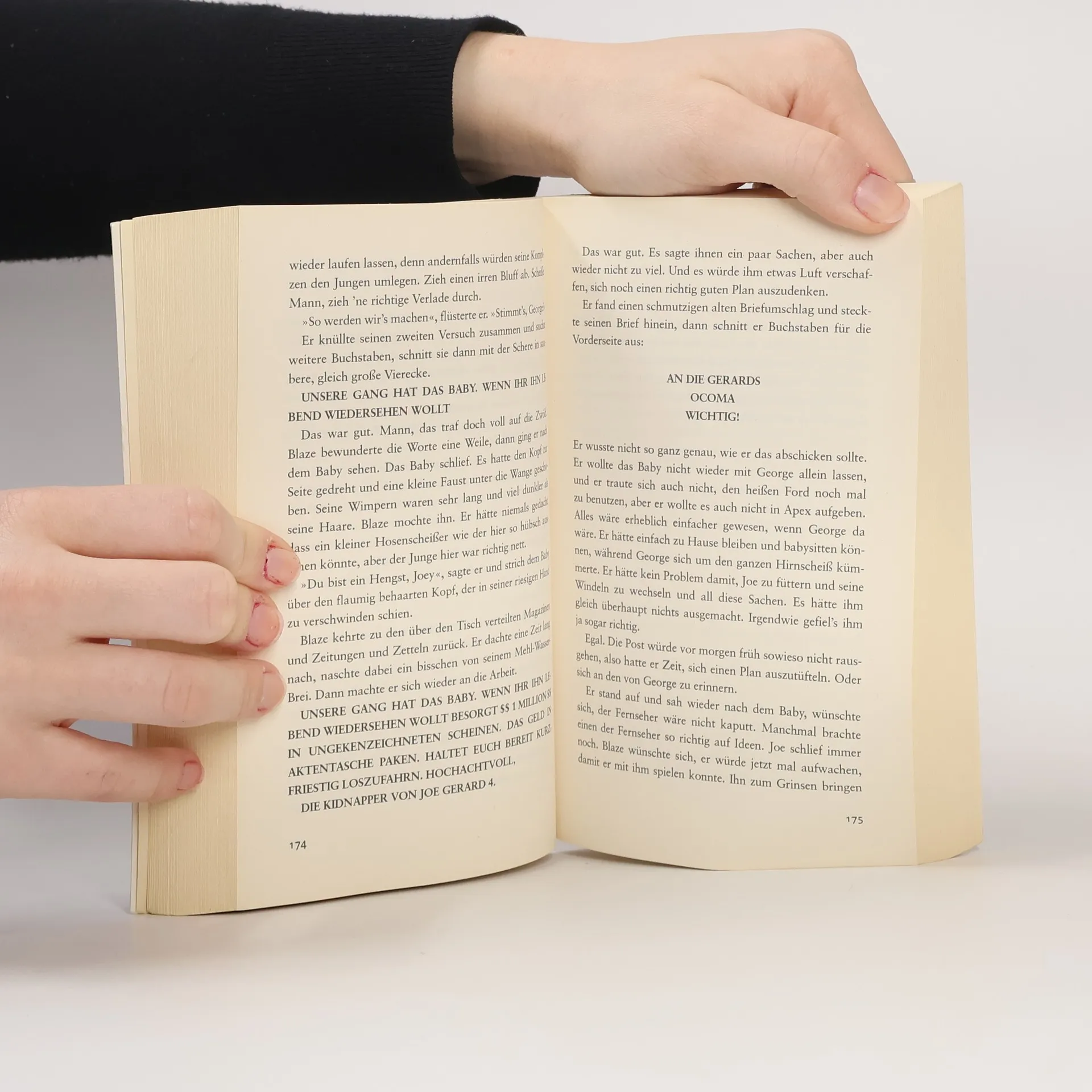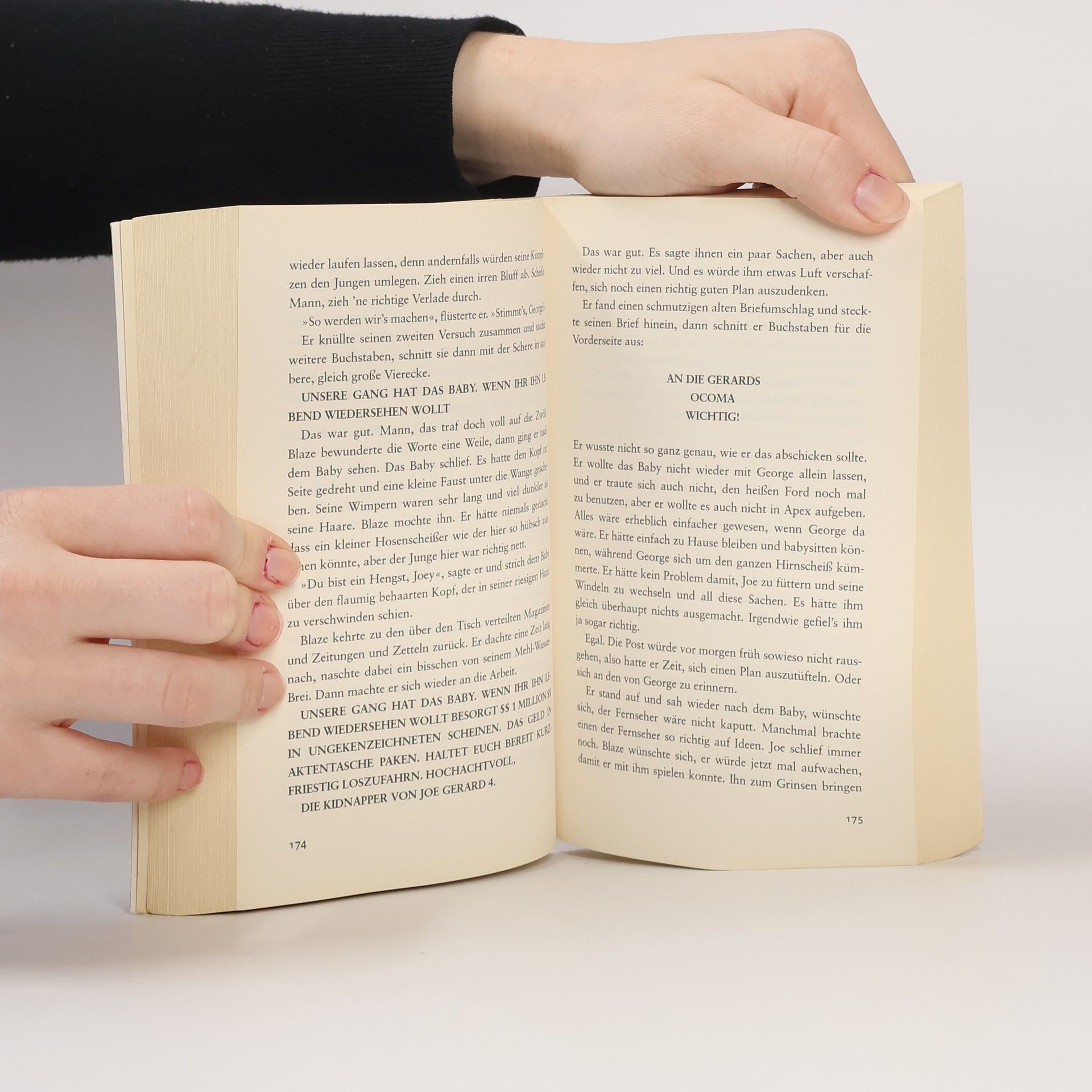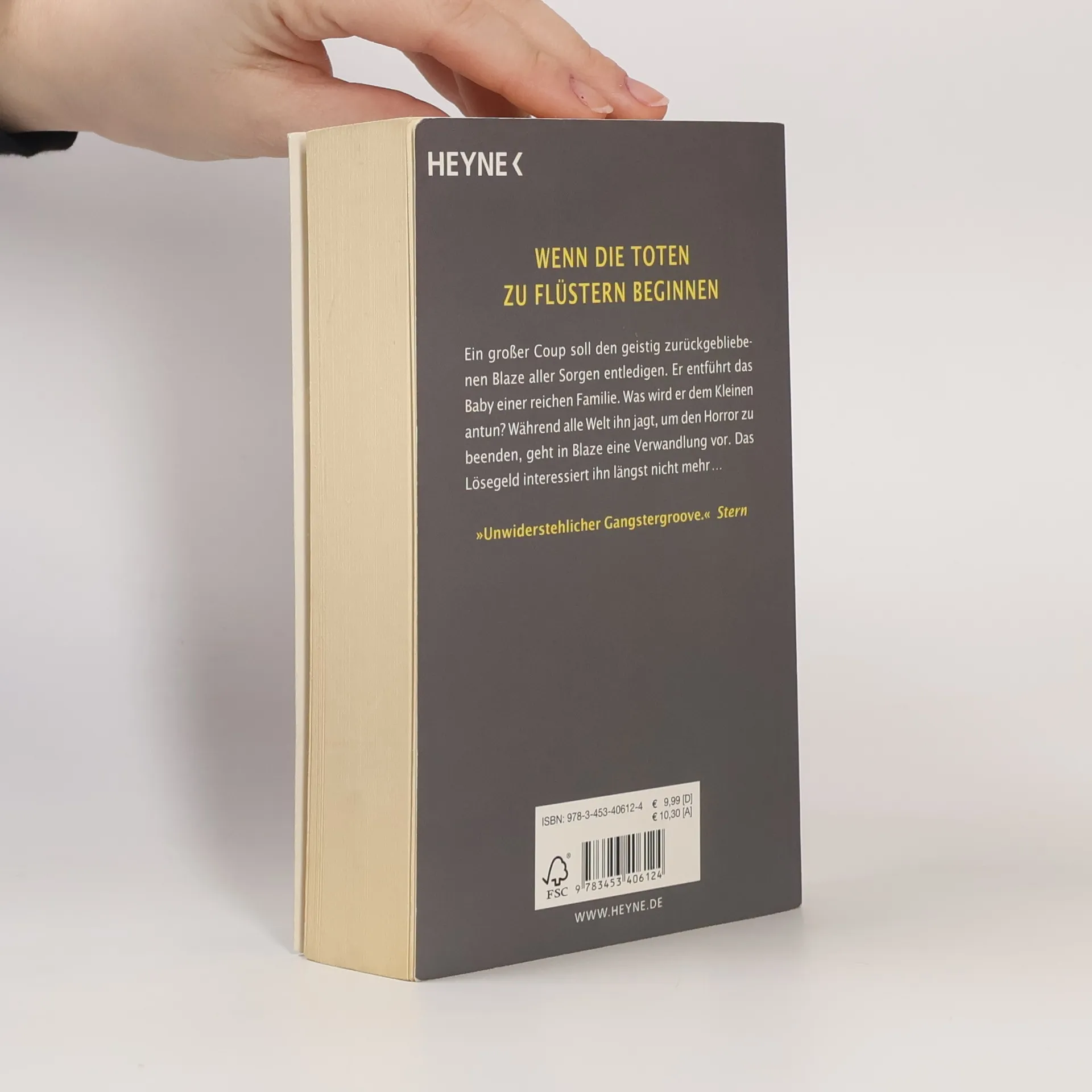 Grausam, packend, anrührend – Wenn die Toten zu flüstern beginnen … Ein großer Coup soll den geistig zurückgebliebenen Blaze aller Sorgen entledigen. Er entführt das Baby einer reichen Familie. Was wird er dem Kleinen antun? Während alle Welt ihn jagt, um den Horror zu beenden, geht in Blaze eine Verwandlung vor. Das Lösegeld interessiert ihn längst nicht mehr ...Die Kindheit des jungen Blaze ist schrecklich: Die Mutter ist gestorben, und sein Vater, ein Trinker, verprügelt ihn ständig und wirft ihn so oft die Treppe hinunter, bis das Kind einen bleibenden Schaden davonträgt. Der leicht behinderte Junge kommt in ein Kinderheim, wo sich die kommenden Jahre jedoch erst recht qualvoll gestalten. Als Jugendlicher begeht er mit seinem Kumpel George harmlose Straftaten, bis dieser bei einer Stecherei umkommt. Aber George meldet sich aus dem Totenreich und flüstert Blaze ein, einen größeren Coup zu starten. Um an wirklich viel Geld zu kommen, entführt Blaze schließlich das Baby einer reichen Familie. Allein mit dem kleinen Bündel Leben, erwacht in ihm eine ungeahnte Fürsorge. Die Flucht vor dem gigantischen Polizeiaufgebot führt in eine Katastrophe ...