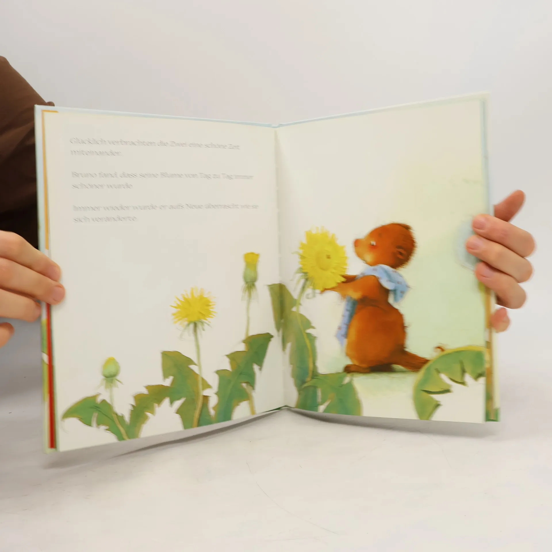 Bruno, das Murmeltier, erwacht aus seinem Winterschlaf und schließt Freundschaft mit einem wunderschönen Löwenzahn. Als der Frühling sich dem Ende zuneigt, verwandelt sich der Löwenzahn in eine Pusteblume und bittet Bruno: ŇWenn du mir vertraust, dann puste, so fest du kannst und alles wird gut.ň Bruno vertraut ihr und pustet. Die Blume ist zerstört, nur ihre Samen tanzen wie kleine Fallschirme im Wind. Zunächst ist Bruno sehr traurig. Doch im nächsten Frühling erlebt er, wie gut es war, dem Versprechen der Blume zu vertrauen.
