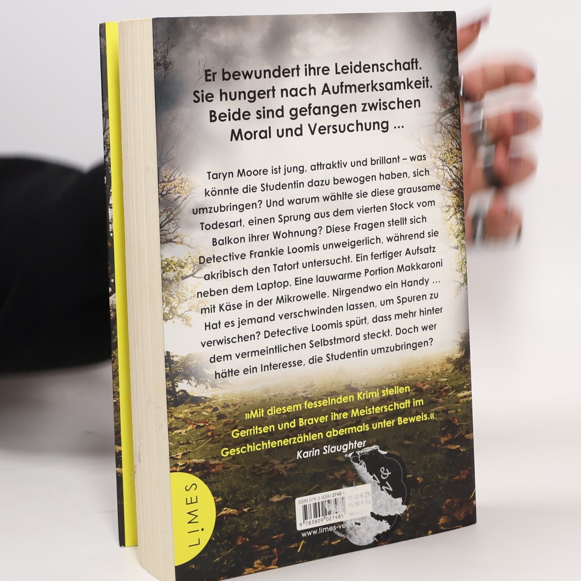 Der brandneue Pageturner aus der Feder der Bestsellerautoren Tess Gerritsen und Gary Braver – ein Spannungshochkaräter über Obsession, Versuchung und menschliche Schwächen. Taryn Moore ist jung, attraktiv und brillant – warum sollte sie sich umbringen? Detective Frankie Loomis spürt sofort, dass mehr hinter der Geschichte steckt, als sie den Tatort des vermeintlichen Selbstmords untersucht. Die Studentin hat sich aus dem Fenster ihres Apartments gestürzt. Doch ihr Handy ist spurlos verschwunden. Hat es jemand verschwinden lassen, um Spuren zu vertuschen?Für den Englischprofessor Jack Dorian war Taryn die vollendete Versuchung: intelligent, aufmerksam und zu hundert Prozent tabu. Doch Taryn hatte auch eine dunkle Seite, eine Neigung zu obsessiver Liebe – auch für Jack. Und mit ihrem Tod haben seine Probleme erst richtig begonnen.Loomis‘ Ermittlungen enthüllen pikante Geheimnisse. Schnell wird klar, dass Jack Dorian mehr weiß, als er offenbart. Doch hat er auch einen kaltblütigen Mord auf dem Gewissen? Weitere Stand-alone-Krimis von Tess Gerritsen: »Gute Nacht, Peggy Sue«»Kalte Herzen«»Roter Engel«»Trügerische Ruhe«»In der Schwebe«»Leichenraub«»Totenlied«»Das Schattenhaus«