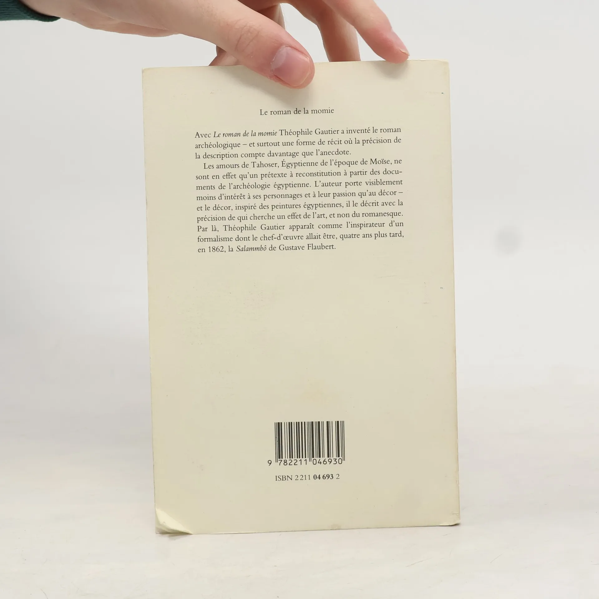 Avec le roman de la momie, Théophile Gautier a inventé le roman archéologique - et surtout une forme de récit où la précision de la description compte davantage que l'anecdote. Les amours de Tahoser, Egyptienne de l'époque de Moïse, ne sont en effet qu'un prétexte à reconstitution à partir des documents de l'archéologie égyptienne. L'auteur porte visiblement moins d'intérêt à ses personnages et à leur passion qu'au décor - et le décor, inspiré des peintures égyptiennes, il le décrit avec la précision de qui cherche un effet de l'art, et non du romanesque. Par là, Théophile Gautier apparaît comme l'inspirateur d'un formalisme dont le chef-d'œuvre allait être, quatre ans plus tard, en 1862, La Salammbô de Gustave Flaubert.
