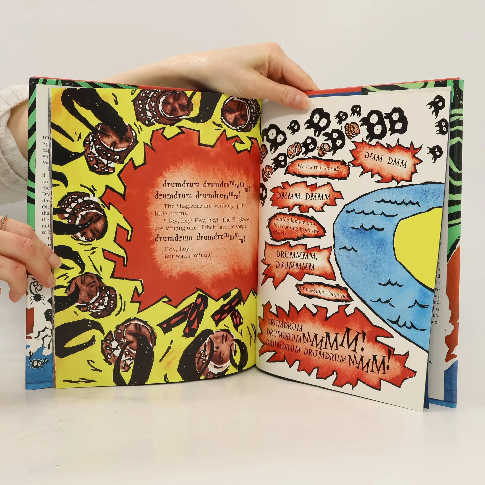 Although the sand crabs try in many ways to get rid of Old Meshikee the turtle, they are not as clever as he and so fail to end his drumming.